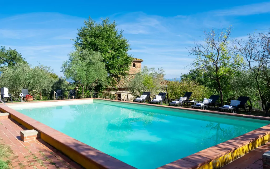Nestled in the rolling hills of Tuscany, Poggio Cuccule is a captivating stone manor house dating back to the late 1700s, set within a stunning natural landscape of olive groves, vineyards, and woodland. Located in Montegonzi, just 7 kilometres from Montevarchi, Italy, this remarkable holiday rental offers panoramic views of the surrounding countryside that are truly breathtaking. The property accommodates up to 16 guests across the main house and a separate dependance, with 10 beds in the main house and 6 beds in the dependance. For smaller groups, the main house alone can be booked for up to 10 guests. The entire estate sits within a fenced 7,000 square metre plot, offering complete privacy and a deep sense of seclusion. Guests have access to a private swimming pool measuring 6 by 12 metres, ideal for leisurely afternoons in the Tuscan sun. The expansive yard provides ample space for outdoor relaxation and recreation, while WiFi internet access keeps you connected throughout your stay. Parking is available on the property, ensuring convenience upon arrival.