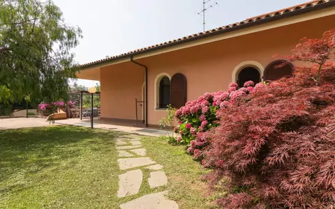Villa Trabbia is a semi-detached house spanning 200 m2 across 2 levels, welcoming up to 6 guests across 3 bedrooms and 2 bathrooms. On the ground floor, the property opens into a spacious living and dining room furnished in a comfortable and modern style, complete with a television and direct access to the garden. This level also features a well-equipped kitchen and living area fitted with an oven, 4 gas rings, a dishwasher, a toaster, and a kettle, also with its own exit to the garden. 2 double bedrooms are located on this floor, accompanied by 2 bathrooms: one with a bath, bidet, and WC, and another with a shower, bidet, WC, and a hydromassage bath. On the upper floor, accessible via a spiral staircase, there is 1 additional room with a ceiling height ranging from 100 to 180 cm and a rooflight, furnished with 2 single beds measuring 80 cm in width and 200 cm in length. This upper level also includes a bidet, a separate WC, and a private exit to the balcony. In the basement, connected by a spiral staircase, a warehouse provides practical storage space along with a washing machine and dedicated bike storage. Outdoors, the property offers a terrace of 50 m2, a patio of 30 m2, and a large garden of 500 m2, all enjoying open views of the surrounding countryside.