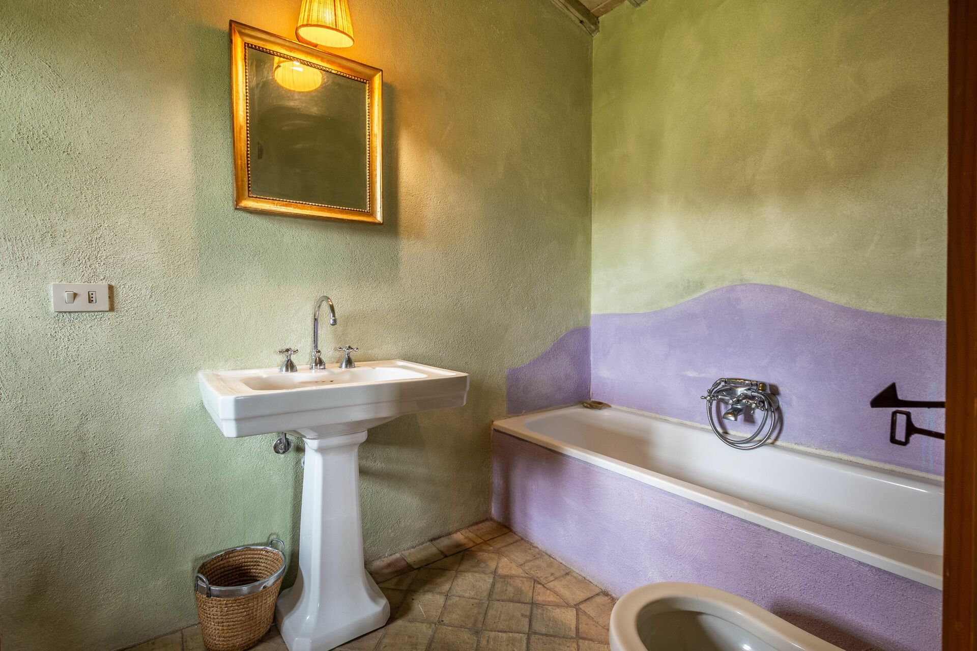 Bedroom + Ensuite Bathroom: double bed, WIFI internet, basin, toilet, bidet, bathtub.