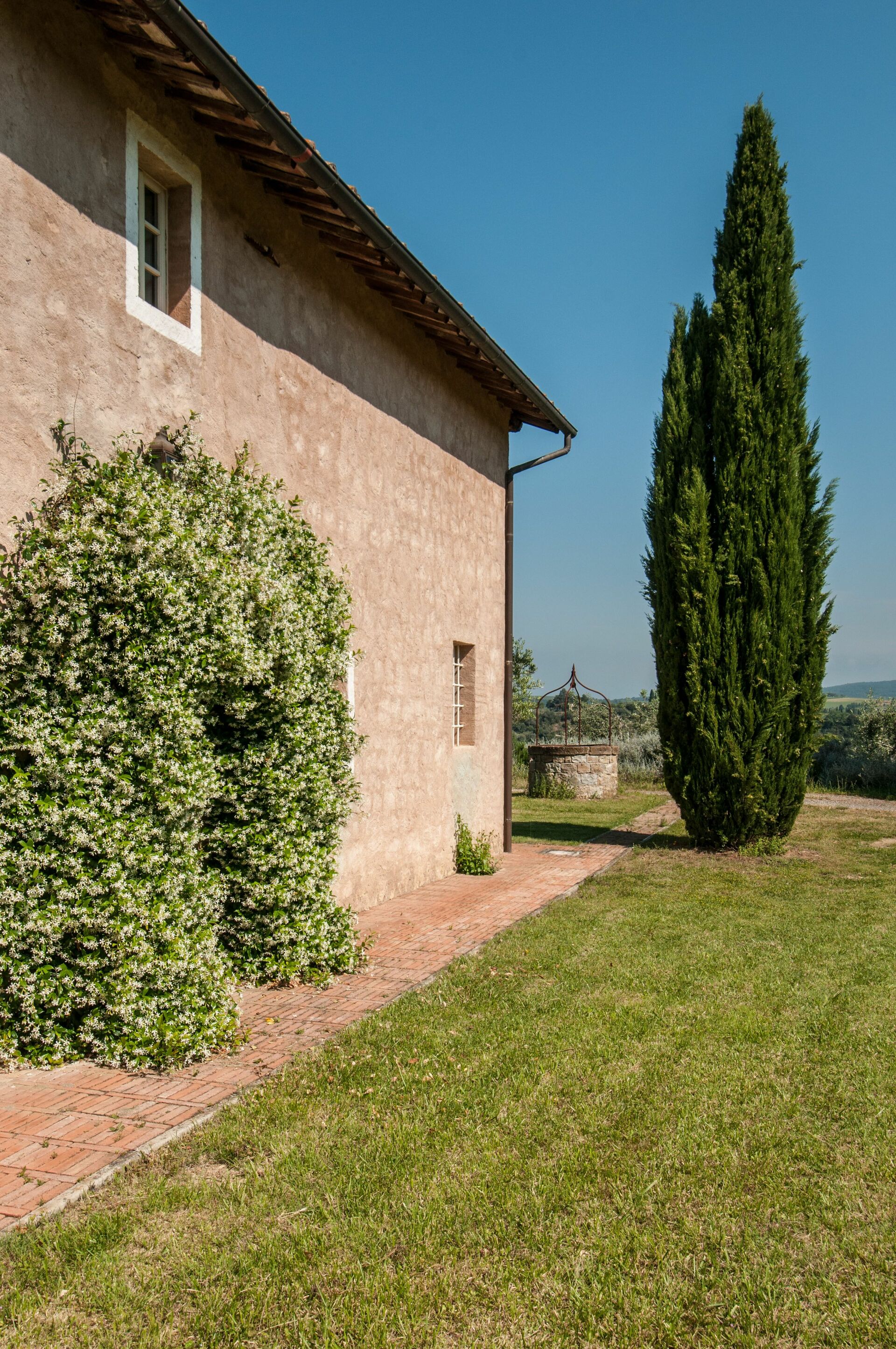 When you arrive you’ll find a beautiful clean well-maintained property with views of the hills perfect for a splendid vacation in Tuscany. After a hectic day of shopping, spend some time with friends and family poolside enjoying a glass of wine - a perfect way to relax at the end the day. Dining with friends and family is a big part of the Tuscan culture. Take advantage of the well-equipped kitchen to prepare meals using local produce while on your vacation. The kitchen includes coffee machine, microwave, toaster, stove and refrigerator, as well as, plenty of tableware and cutlery for up to ten people. Dine 'al fresco' like a real Tuscan, the fully furnished garden is the ideal setting to enjoy food, family and the beautiful Tuscan weather.