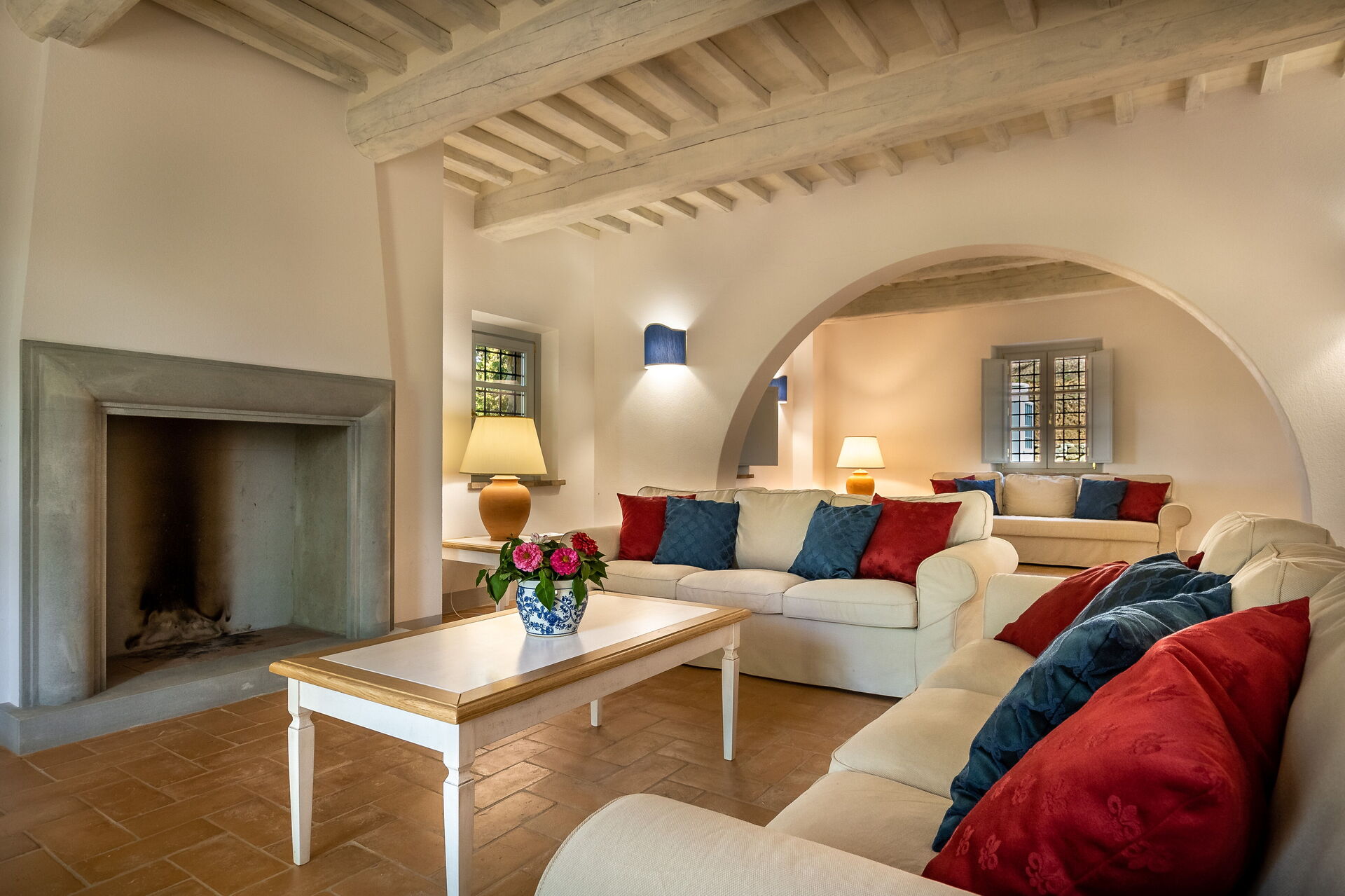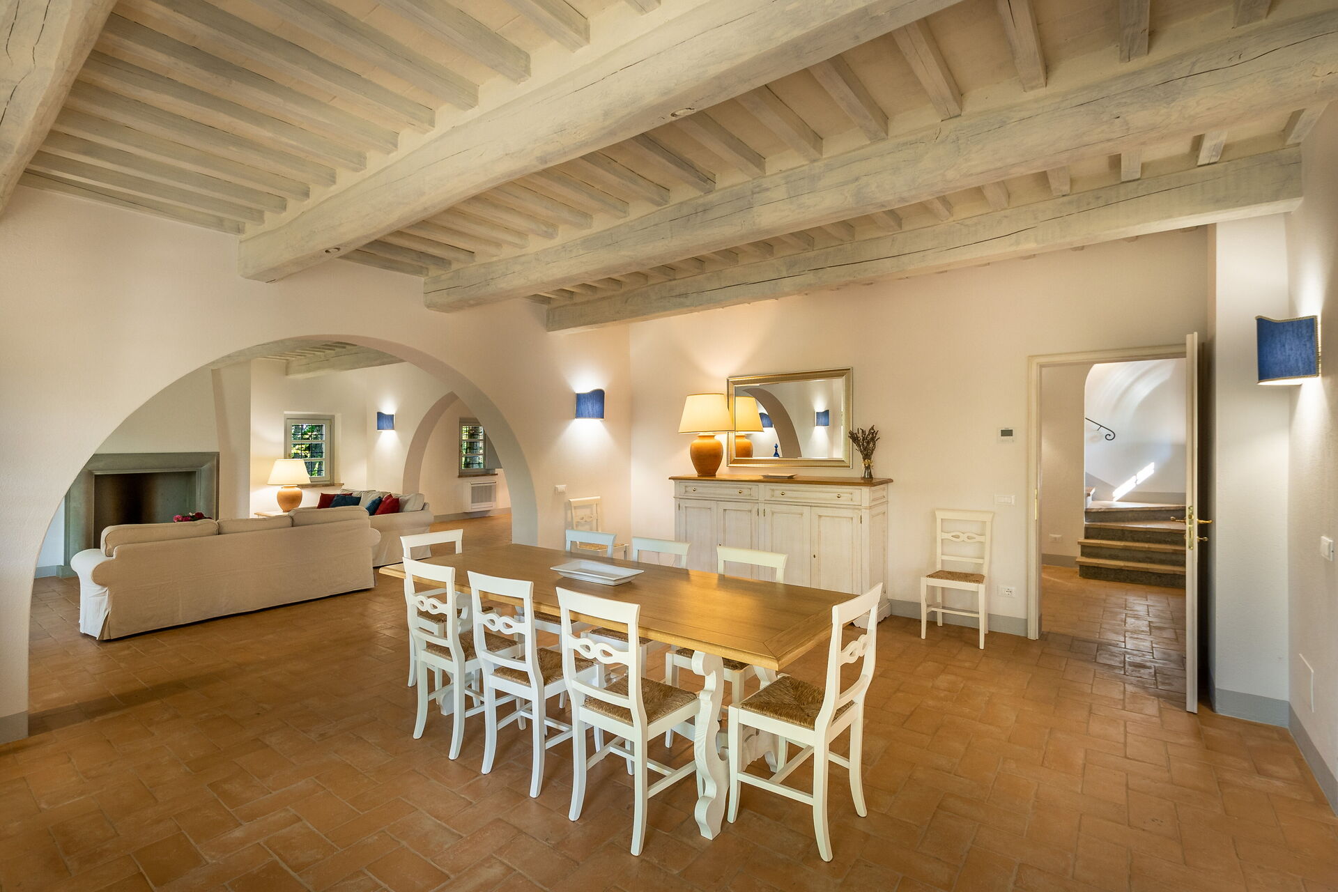 One of the things that you can be guaranteed is that if you book one of our luxury villas in Tuscany, the vacation rental in question is going to have pretty much every ingredient necessary for a perfect base for a dream holiday. Villa San Casciano is a perfect example of this: a beautiful old building that has been perfectly renovated and decorated with impeccable taste and boasts a stunning setting, a gorgeous garden, a private pool, air-conditioning, WIFI, and an array of incredible extra services that can be arranged for and offered to the guests at an additional fee. Sleeping up to 12 people comfortably in seven bedrooms with six bathrooms, this gem is the ideal spot for a luxury getaway in Tuscany with a group of the people you love the most.