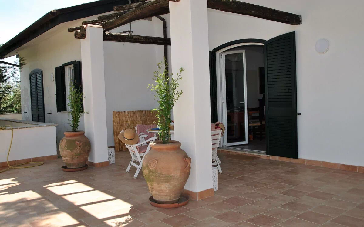 Villa "Corbezzolo" is a detached vacation rental situated amidst fields on a hilltop residential area surrounded by villas in Sperlonga, Italy. The property boasts a spacious 1,000 square meter fenced yard, a patio, and a barbecue area. It offers ample parking on the premises and internet Wi-Fi access, making it an ideal choice for a relaxing holiday getaway.