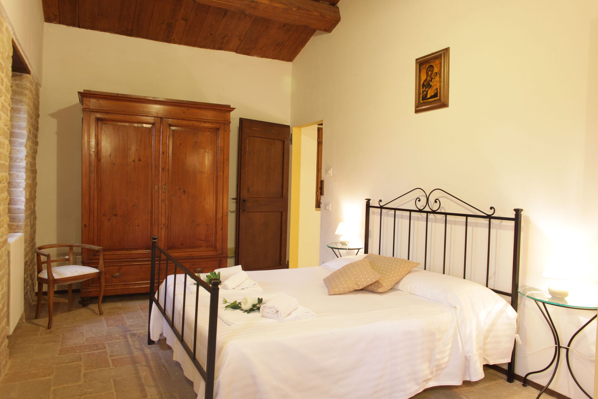 It is furnished with antique furniture; original painted carpets decorate rooms and rooms; bricks and exposed beams give the environment the intimacy but also the solemnity of an ancient dwelling.