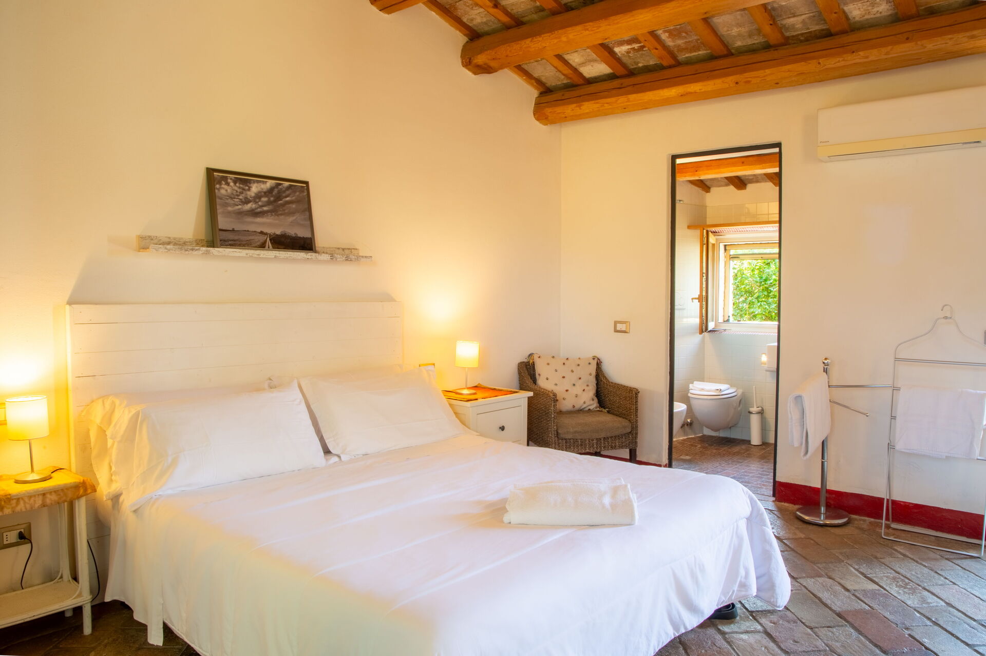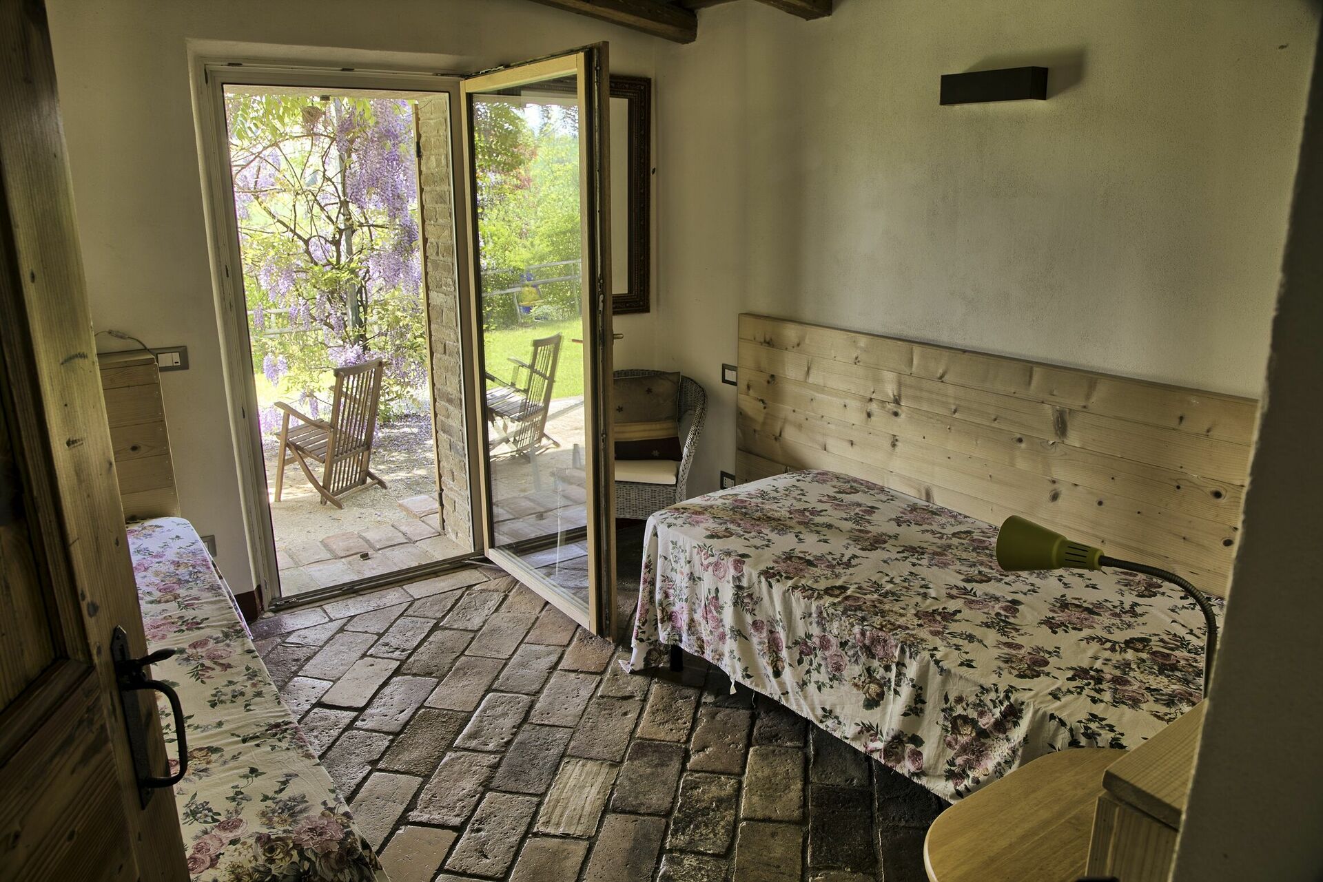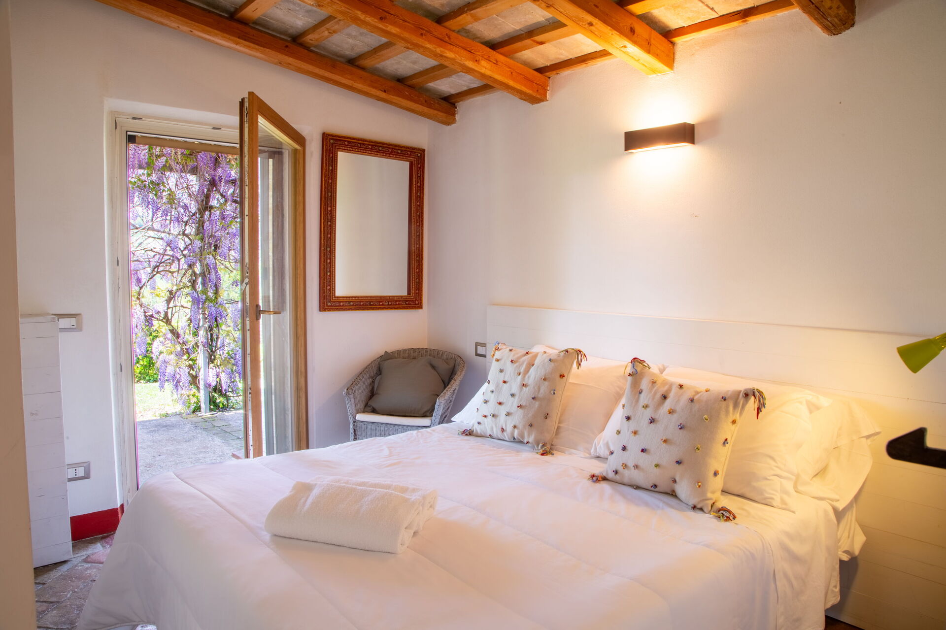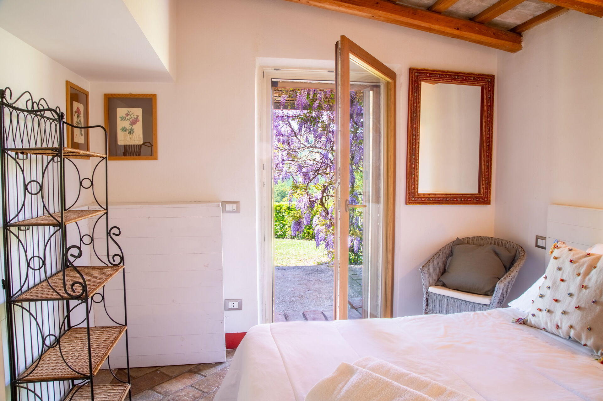 Bedroom 1: double bed, WIFI internet, armchair, working desk, exit to the garden.
