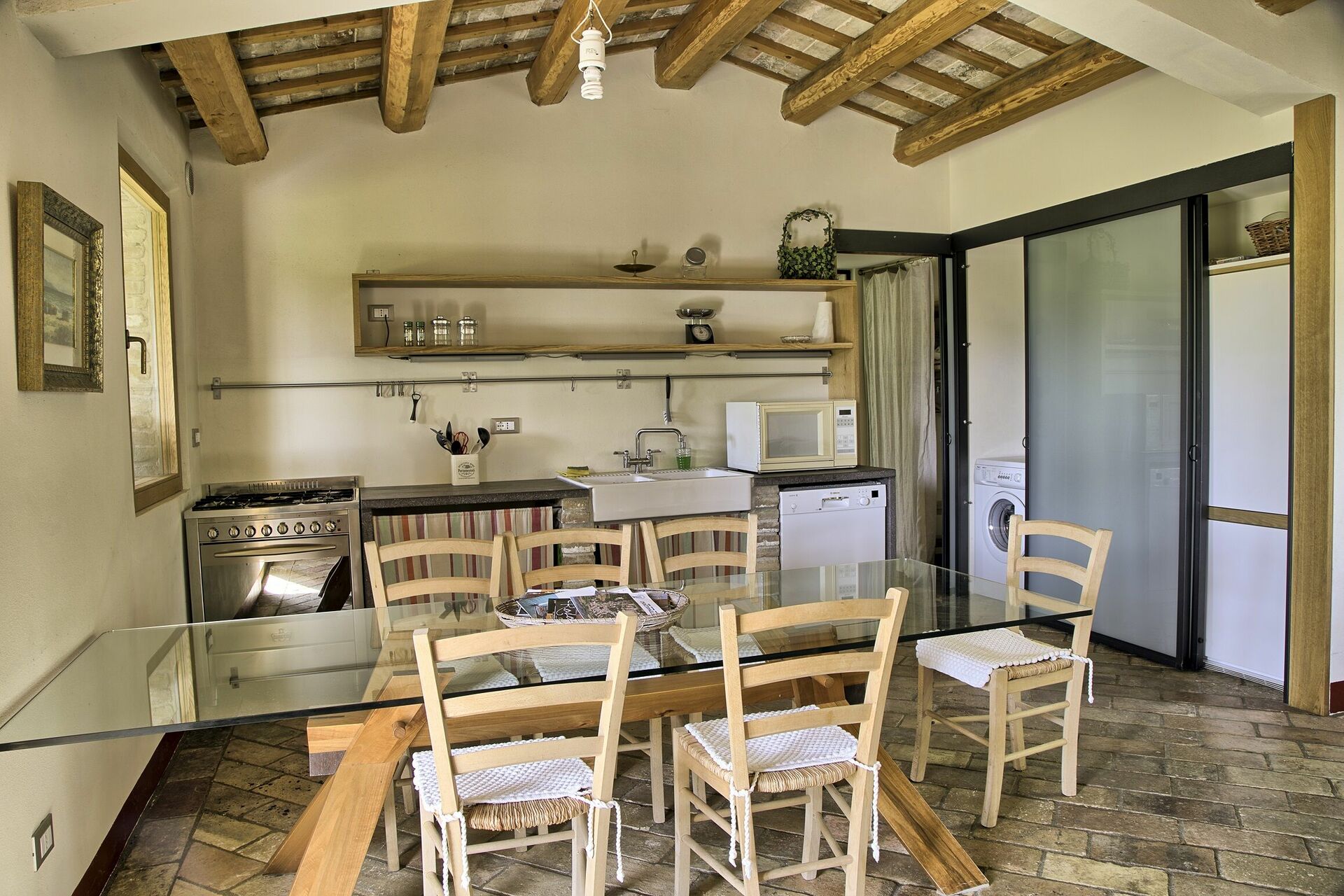 When you arrive you’ll find a beautiful clean well-maintained property with views of the mountains and the city ideal for a peaceful holiday in The Marches. After a busy day of shopping, spend some time with friends and family poolside enjoying a glass of wine - a perfect way to unwind at the end the day. Also available outdoors are a playground, barbecue grill and patio. Sharing a meal with friends and family is a huge part of the Italian culture. Take advantage of the well-equipped kitchen to prepare meals using local produce while on your vacation. The kitchen includes coffee machine, microwave, toaster, stove and refrigerator, as well as, plenty of tableware and cutlery for up to four people. Dine 'al fresco' like a real Italian, the fully furnished veranda is the perfect setting to enjoy food, family and the lovely Italian weather.