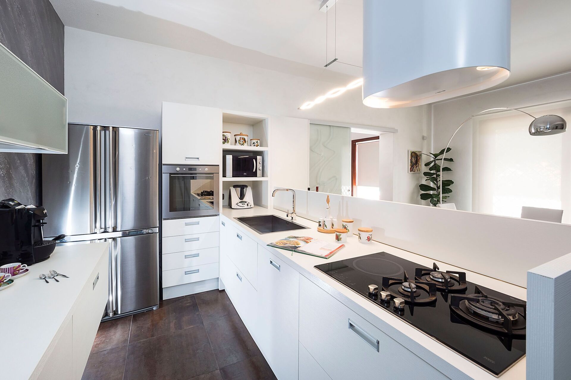 Kitchen + living room: well equipped kitchen, dining table (people: 10), dishwasher, fridge, freezer, microwave, stove top, oven, italian coffee machine, WIFI internet, internet, air conditioning.