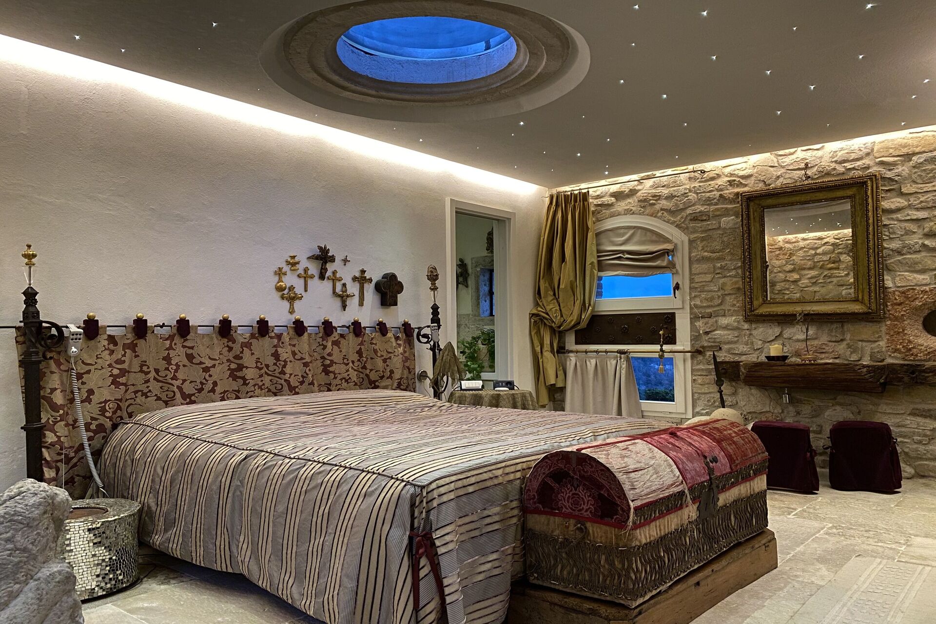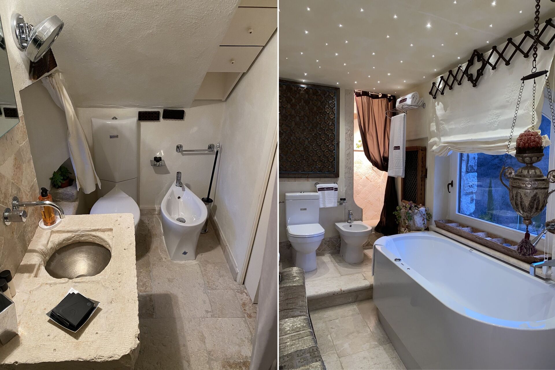 Bedroom + Ensuite Bathroom: double bed, WIFI internet, air conditioning, television, sofa, whirlpool bathtub, basin, toilet, bidet, shower.