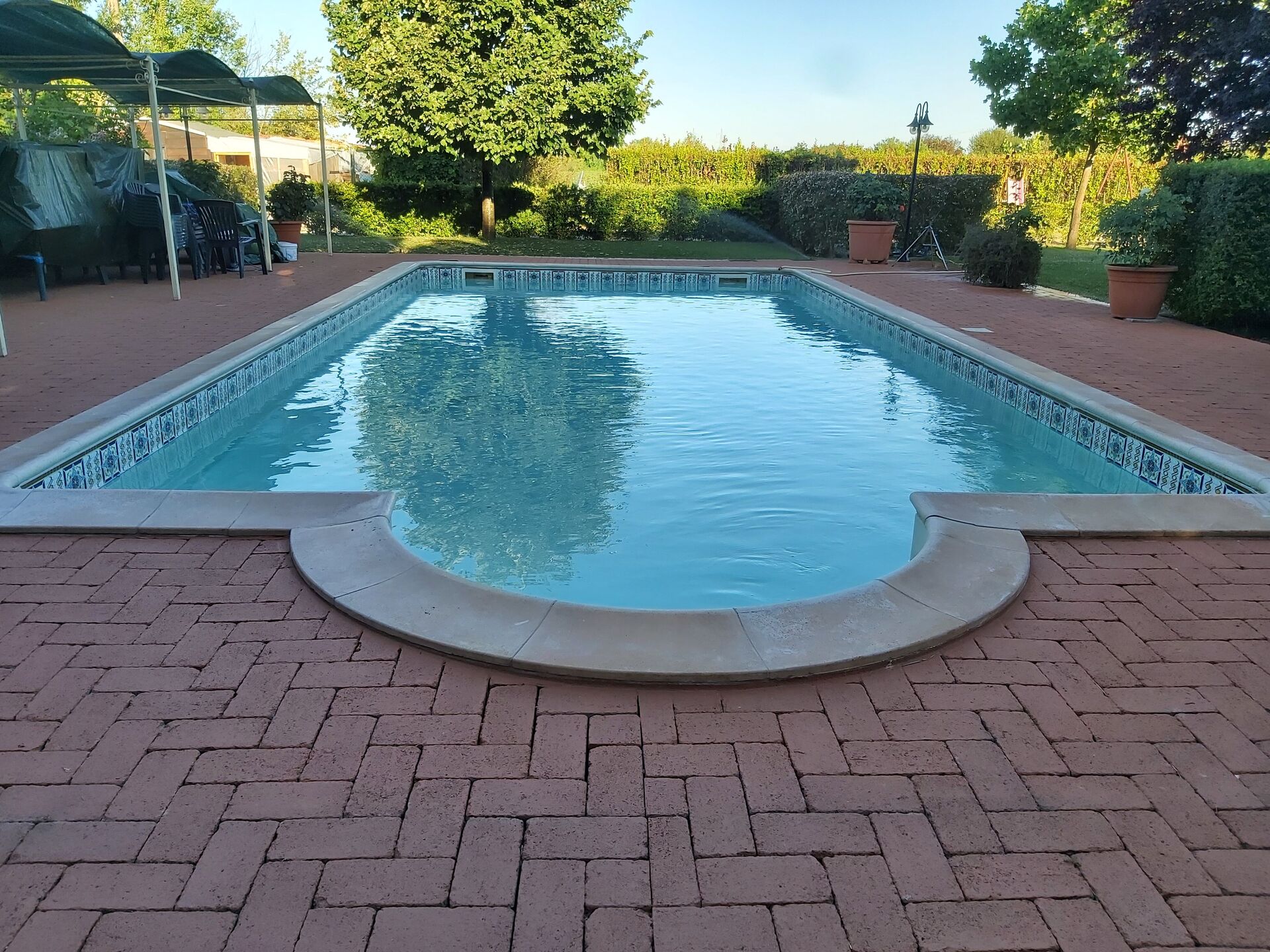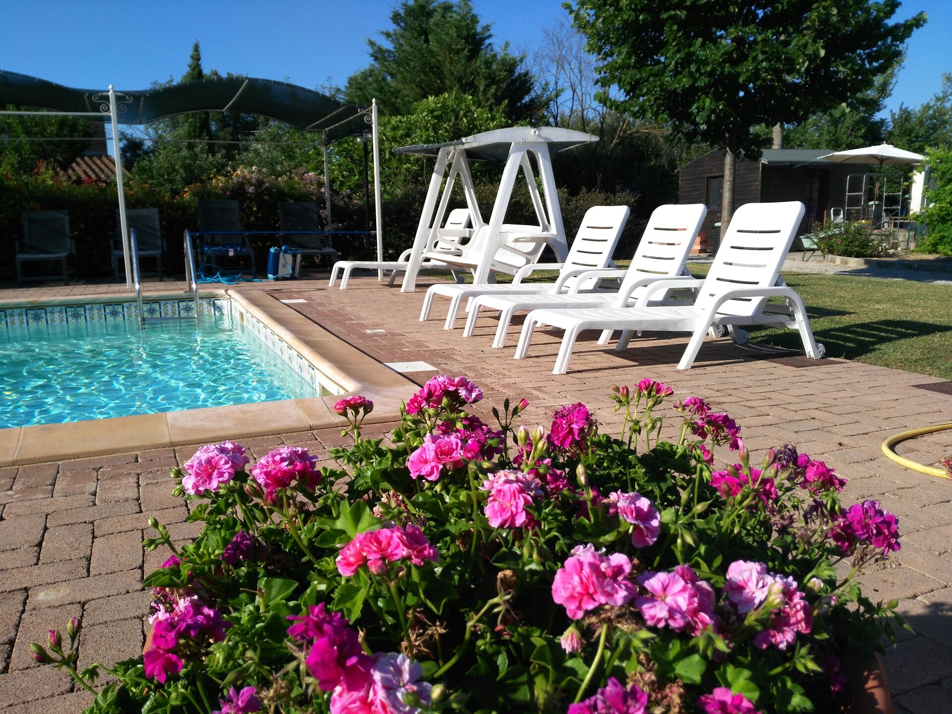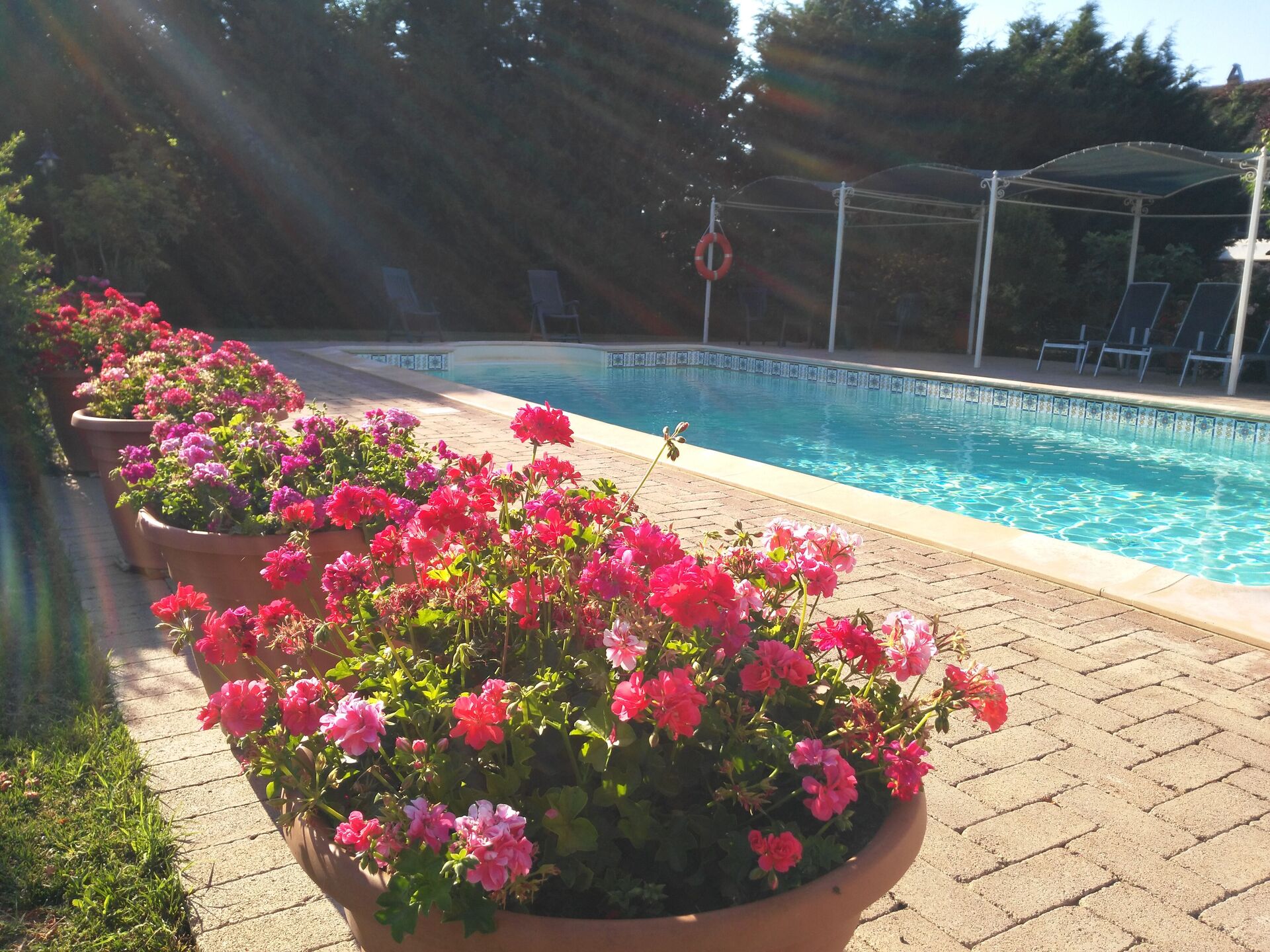 Garden (7500 m2): swimming pool (length: 12m, width: 5m, depth: 1.5m, max. depth: 2m, outdoor), WIFI internet, al fresco dining, two dining tables (people: 20), two gazebos, 12 sunbeds.
