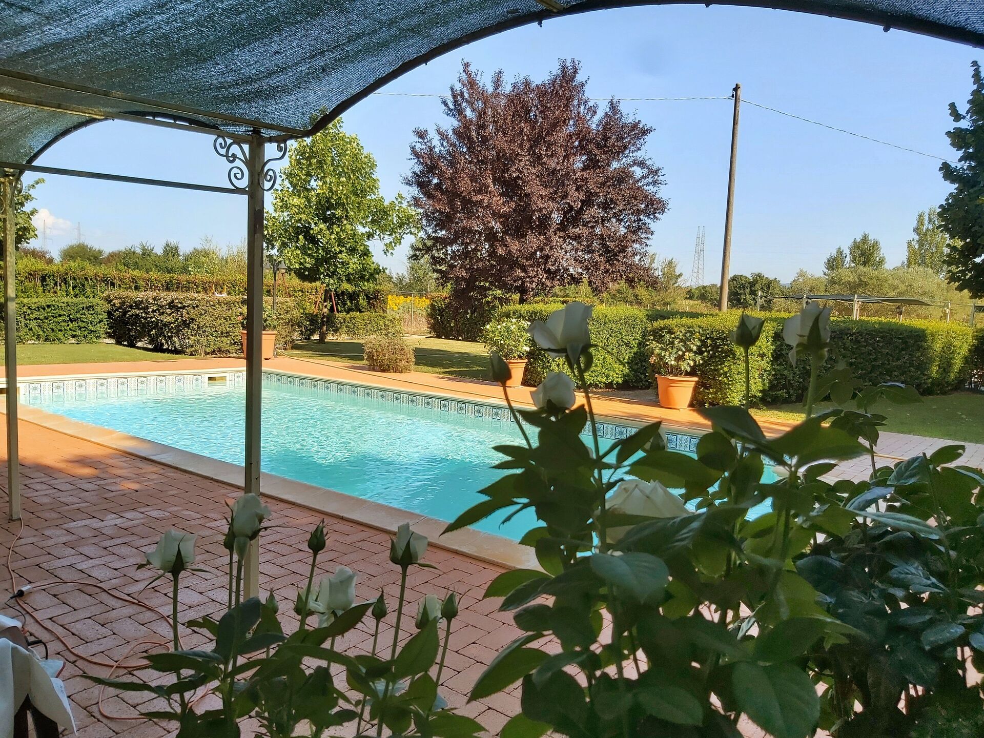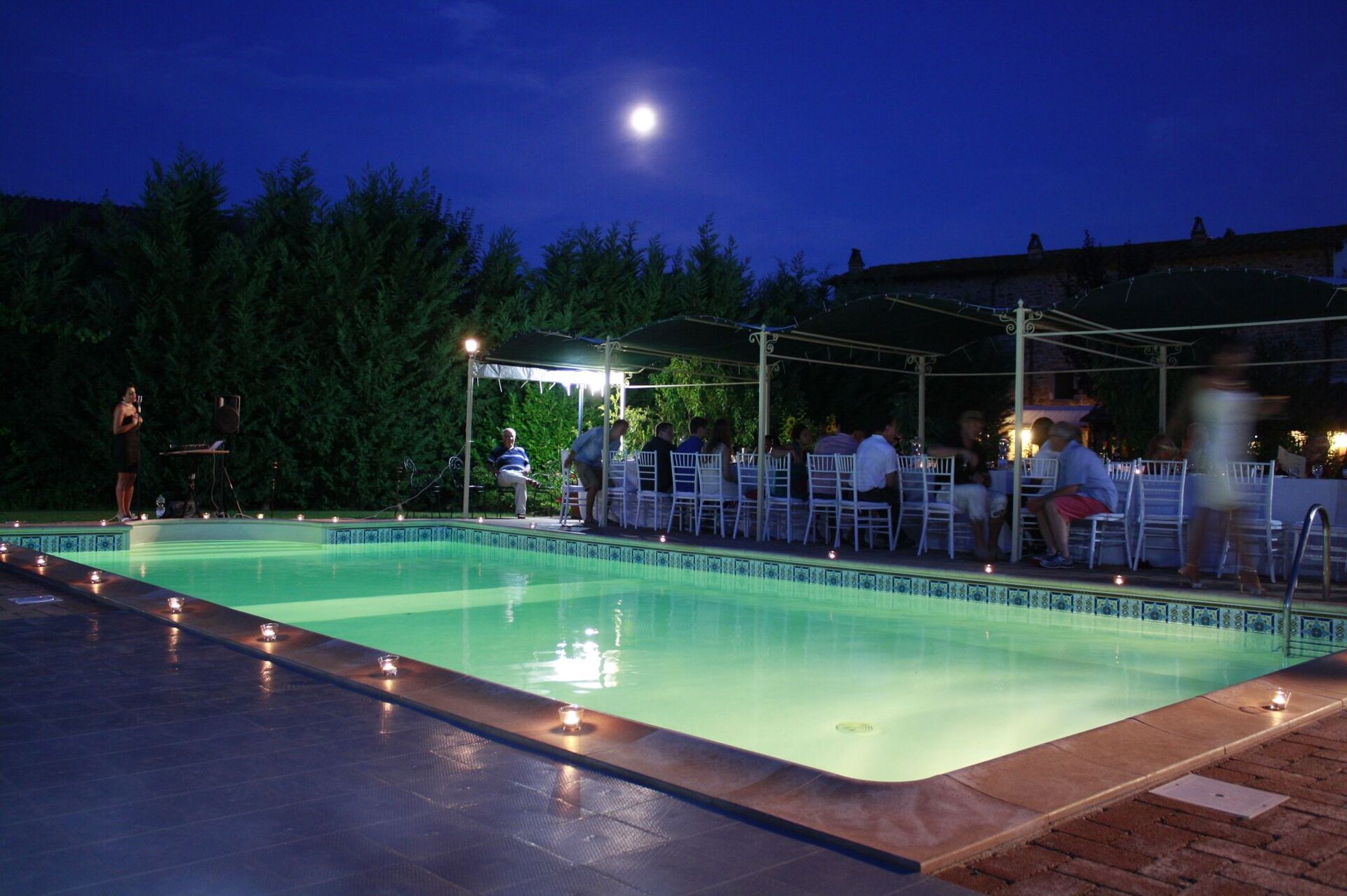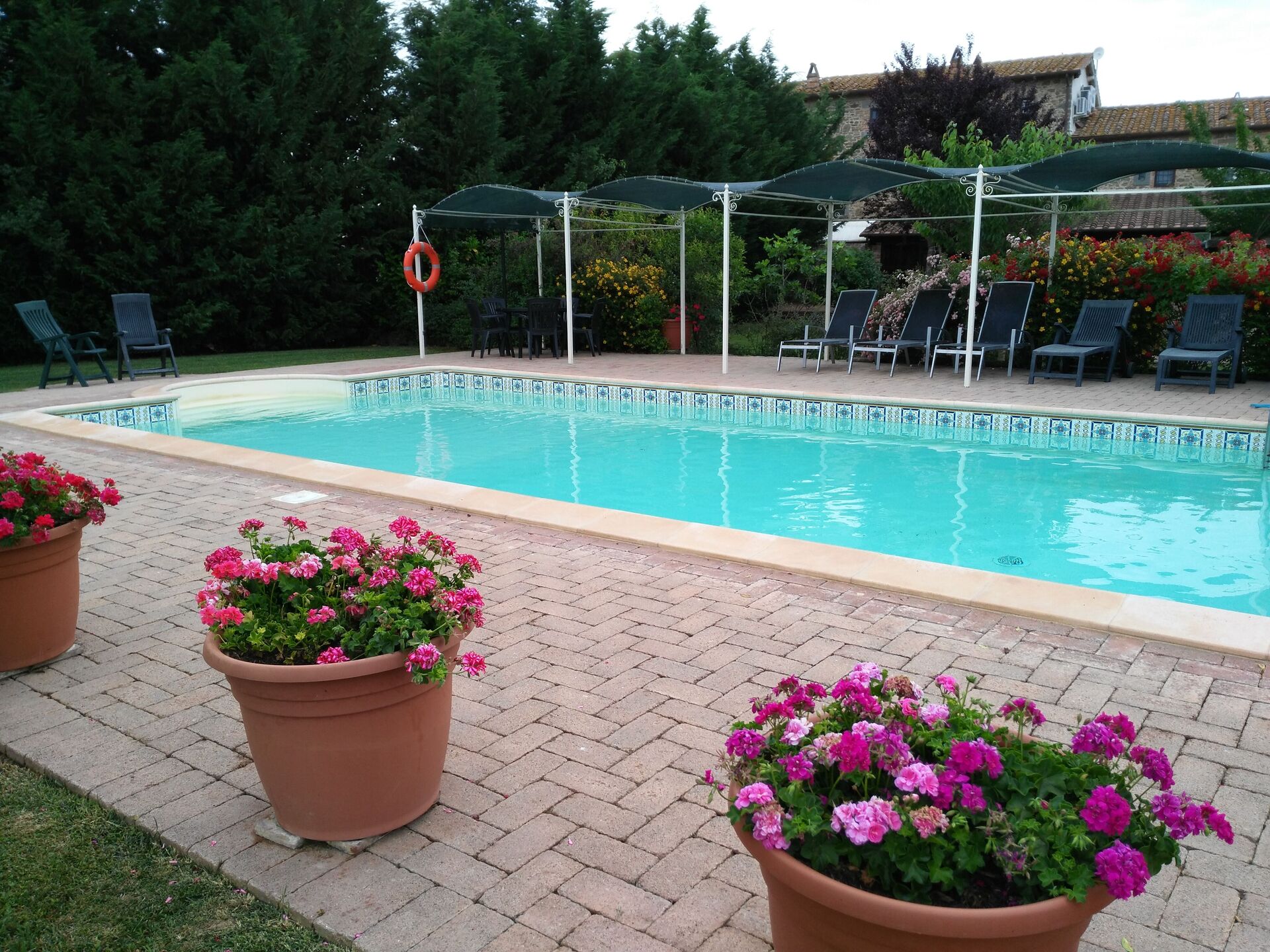 Garden (7500 m2): swimming pool (length: 12m, width: 5m, depth: 1.5m, max. depth: 2m, outdoor), WIFI internet, al fresco dining, two dining tables (people: 20), two gazebos, 12 sunbeds.