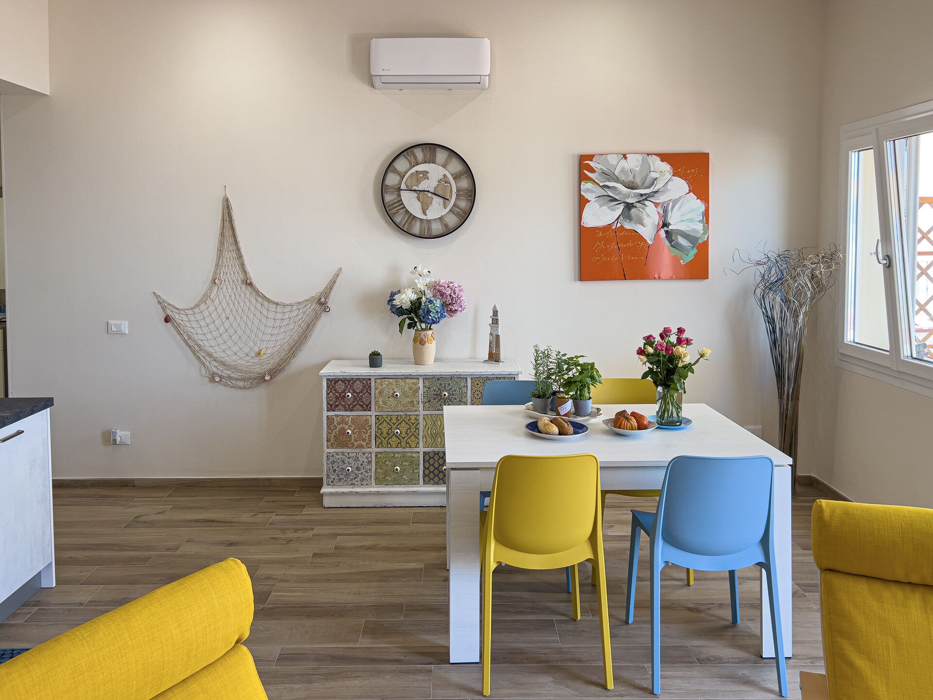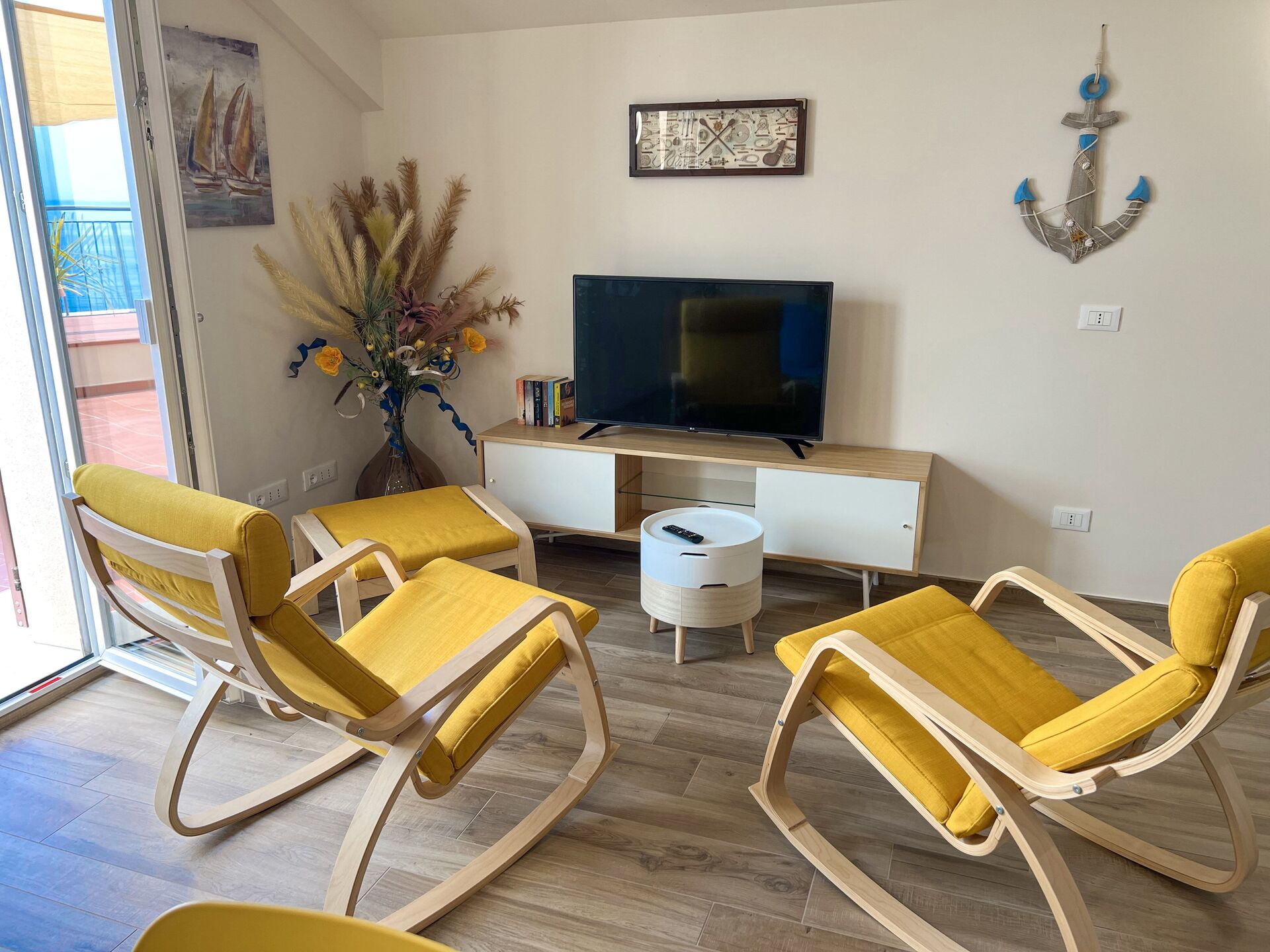 - a kitchen-living room, with dining table. Equipped kitchen, armchairs, Smart TV with some satellite channels. Air conditioning. Oven, cooktop, microwave, American coffee machine, Moka. Exit to terrace.