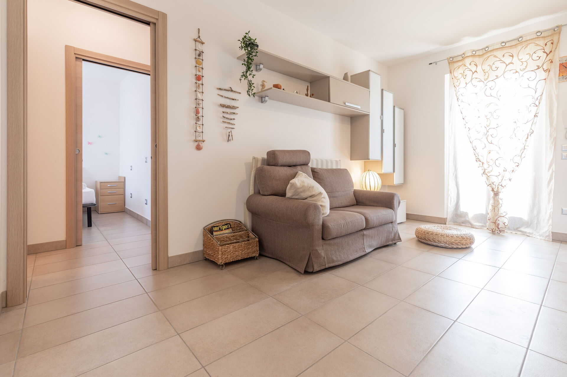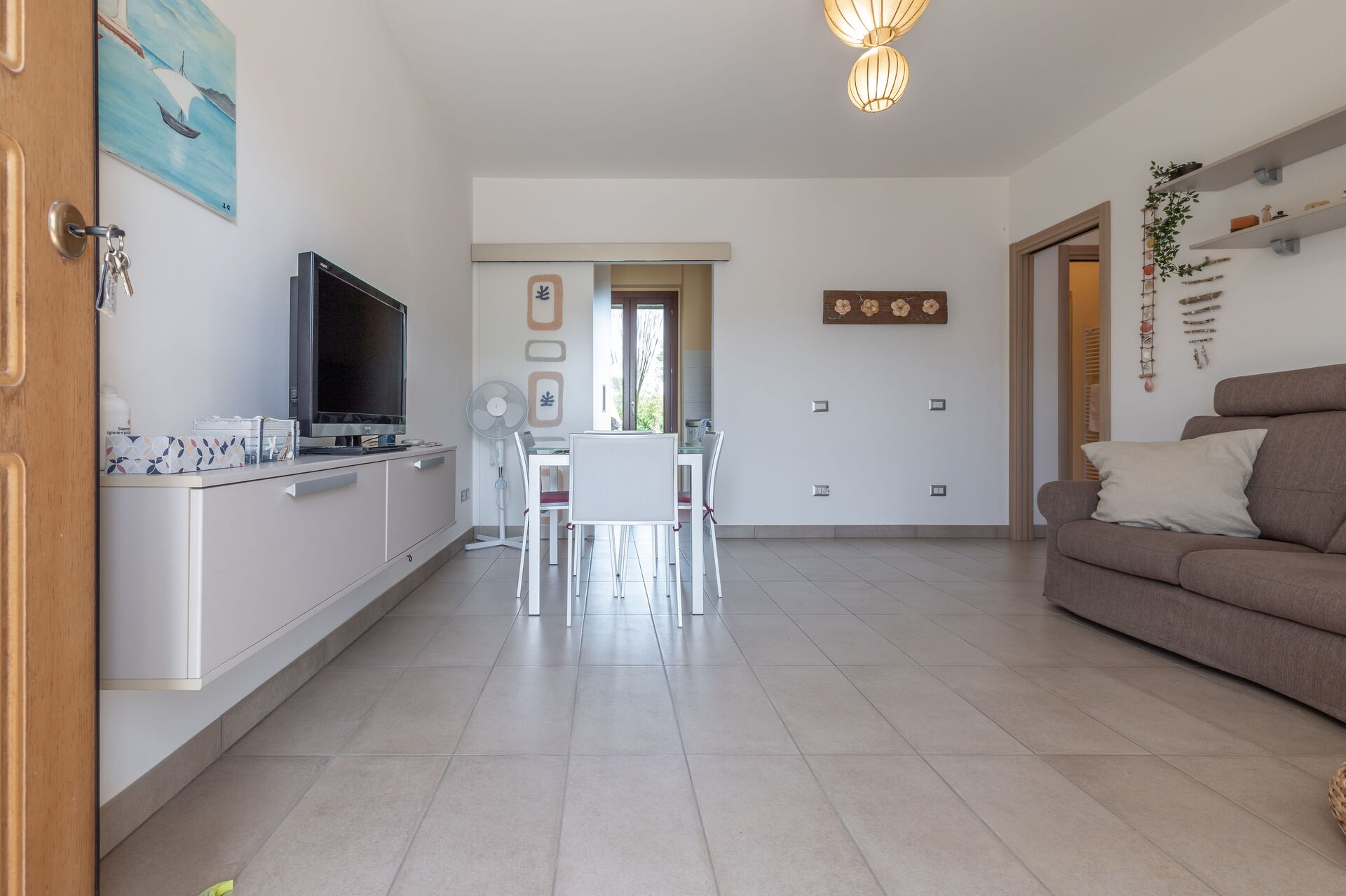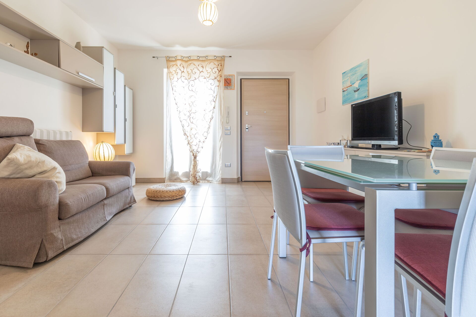 Living room: sofa, armchair, working desk, dining table, WIFI internet, satellite tv, mosquito net, exit to the garden.