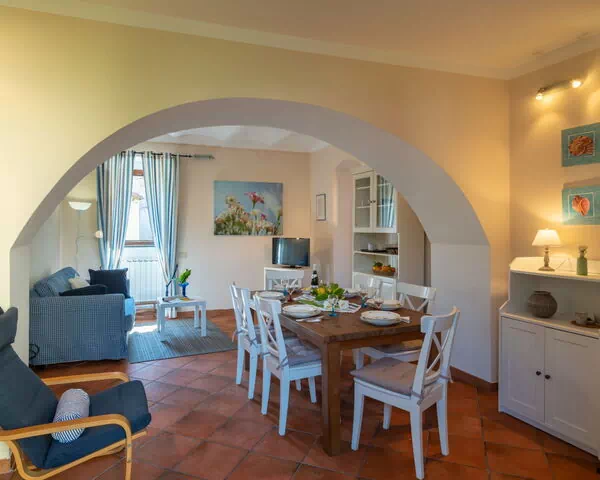 "Ca du Ponte" is an 80 m2 ground floor apartment offering a well-appointed 3-room vacation rental that comfortably accommodates up to 6 guests across 2 bedrooms and 1 bathroom. The first bedroom is furnished with 1 double bed measuring 160 cm in width, while the second bedroom features 1 double bed measuring 140 cm in width, both styled with tasteful and cosy furnishings throughout. A combined living and sleeping area provides additional flexibility, equipped with 1 double sofabed measuring 140 cm in width along with a dining table, making it ideal for accommodating extra guests. The kitchen is a fully equipped separate space featuring a small dining table, perfect for casual meals. The bathroom is fitted with a bath, bidet, and WC, serving all guests with comfort and practicality.