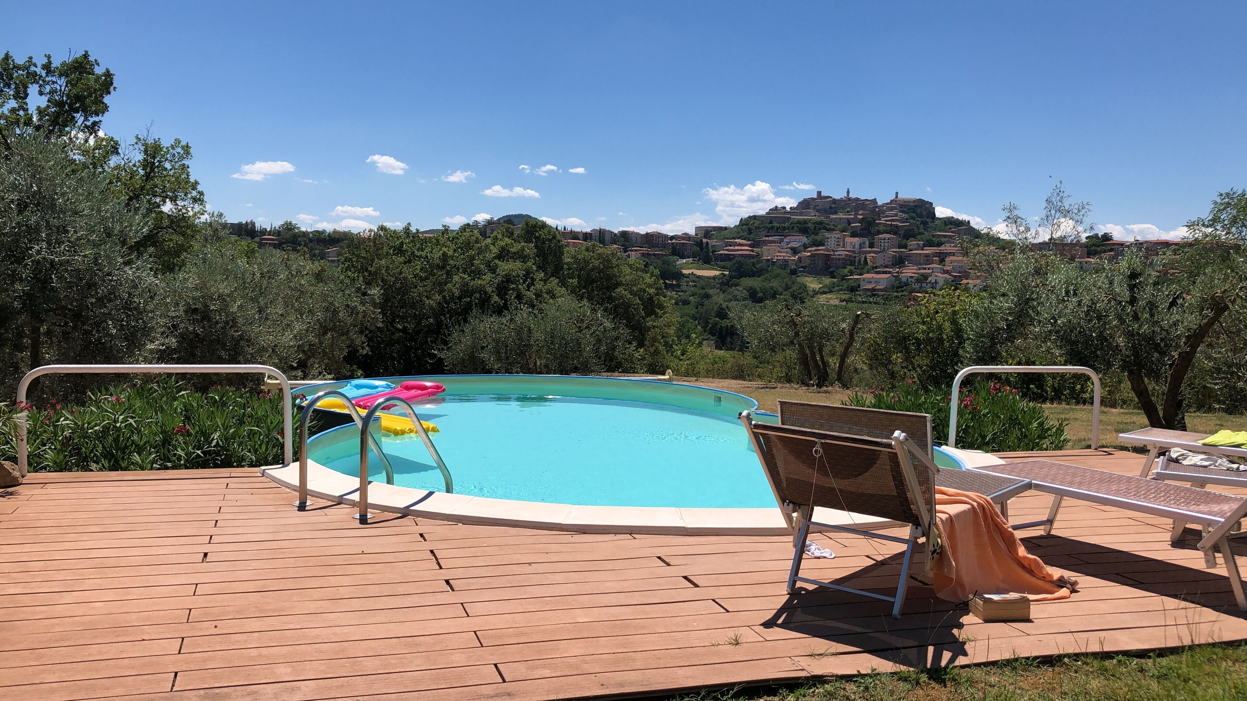 Upon arrival you will be greeted by the owner or manager where you’ll find a lovely clean well-maintained property with views of the hills and the city ideal for a peaceful vacation in Tuscany. Regardless of how you spend your days - visiting museums, sightseeing, shopping or just driving in the countryside, when you arrive home you can relax with your family and friends at the pool for a perfect ending to another day in Tuscany. Also available outdoors are a playground, patio and barbecue grill. Dining with friends and family is a huge part of the Tuscan culture. Take advantage of the well-equipped kitchen to prepare meals using local produce while on your holiday. The kitchen includes coffee machine, microwave, toaster, stove and refrigerator, as well as, plenty of tableware and cutlery for up to six people.
