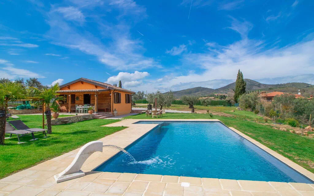 Cosy, comfortable detached chalet "Colle", surrounded by trees and fields in the resort Colle San Paolo, 4 km from Tavernelle's center. It boasts a sunny hilltop position, a private fenced 1,000 m2 park with a seasonal swimming pool (4 x 11 m, depth 140 cm, available from May 1 to October 15), an internal staircase, an outdoor shower, garden furniture, a barbecue area, and parking on the premises. This vacation rental offers Internet Wifi and a well-kept yard.
