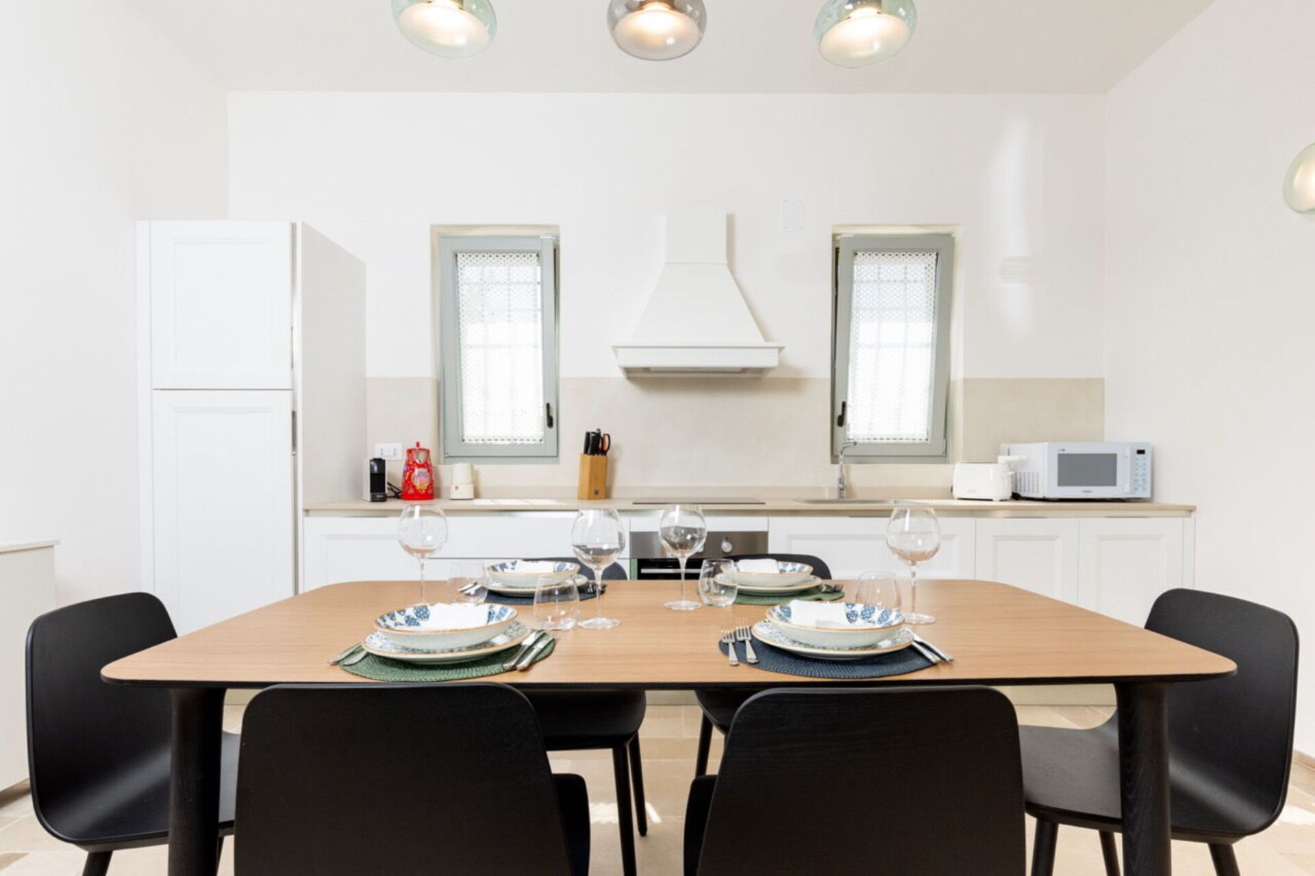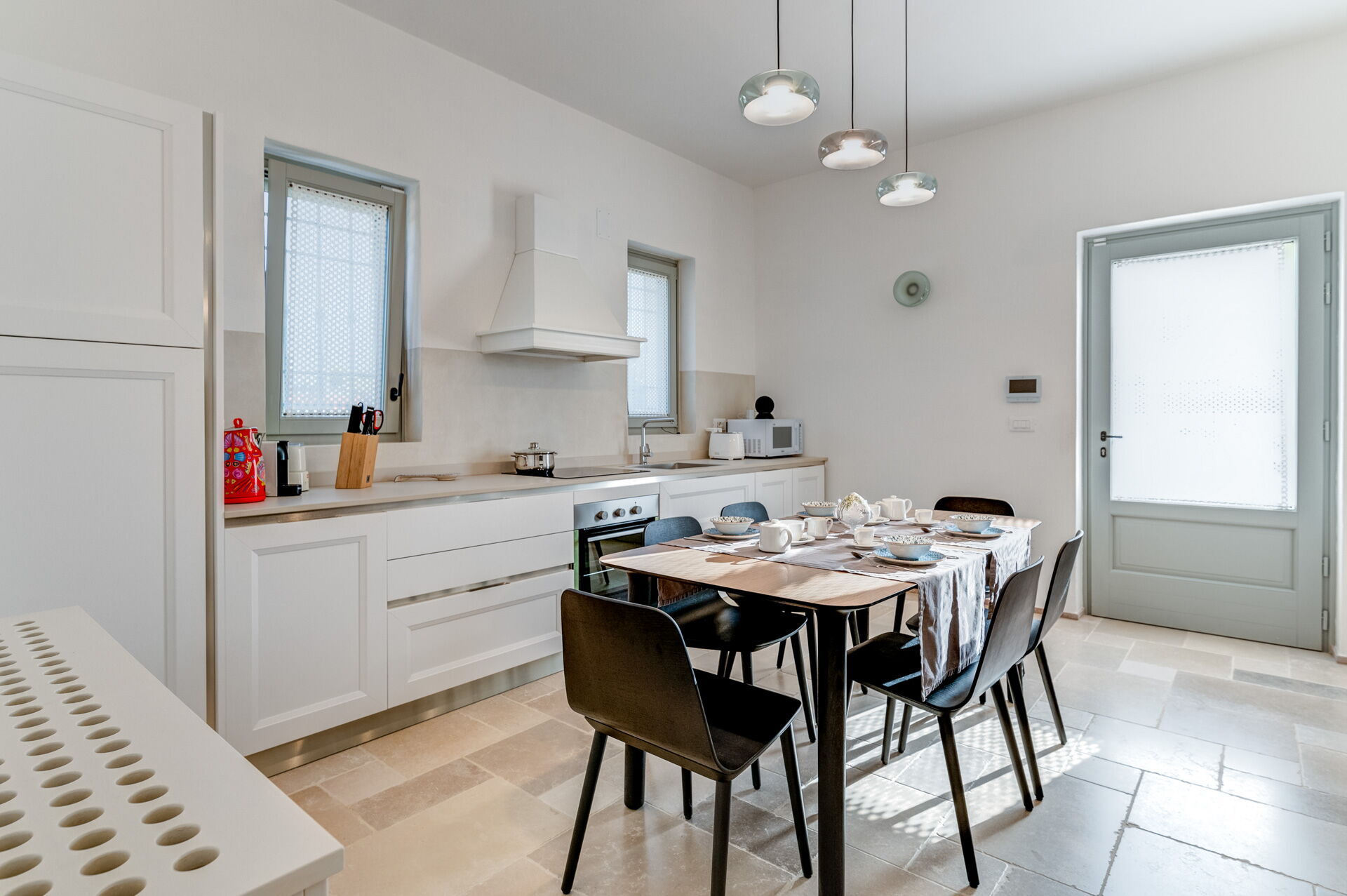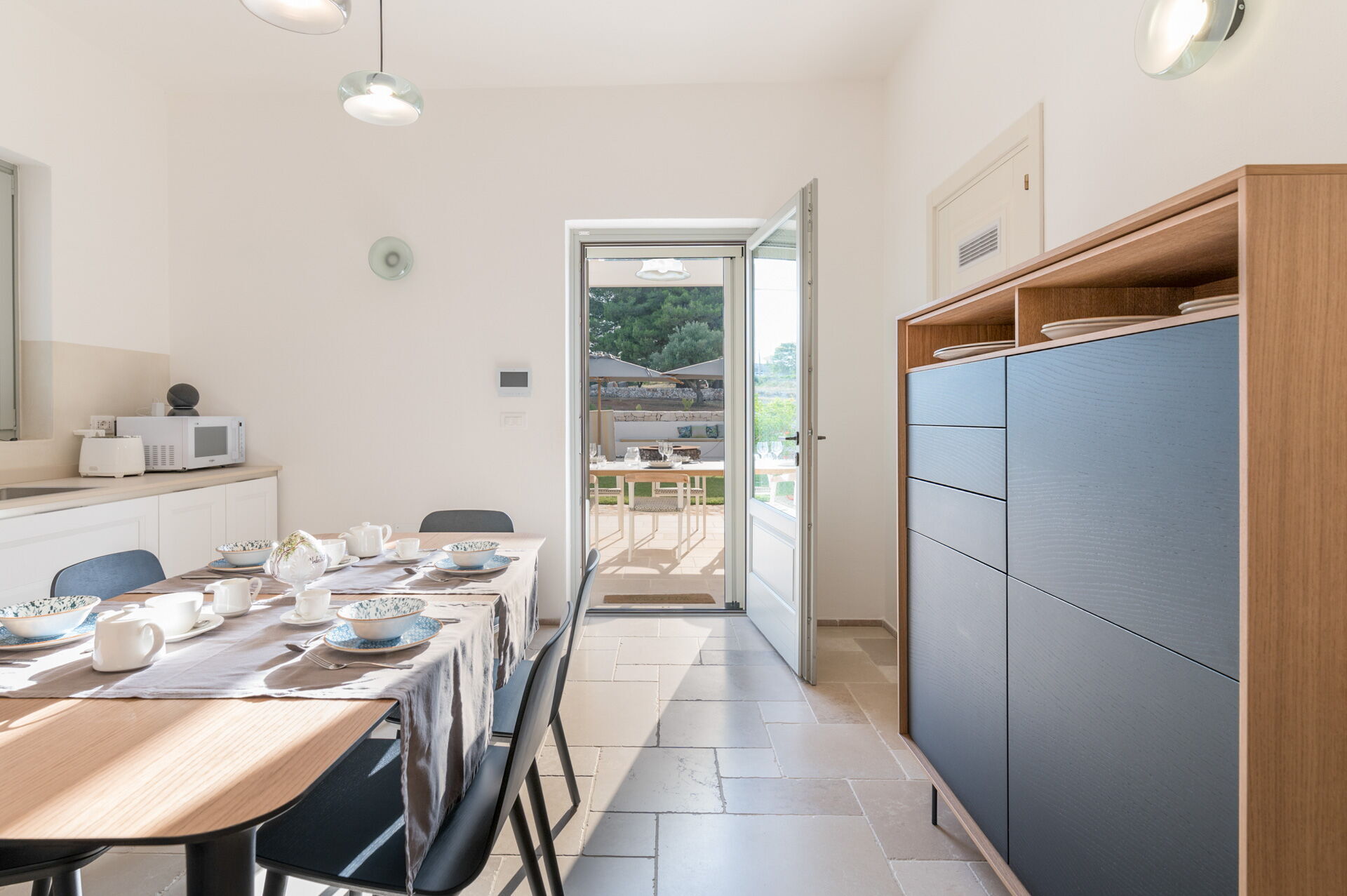 Kitchen (19 m2): dining table (people: 6), well equipped kitchen, stove top, fridge, freezer, italian coffee machine, microwave, dishwasher, co2 detector, smoke detector, WIFI internet, air conditioning , exit to the garden.