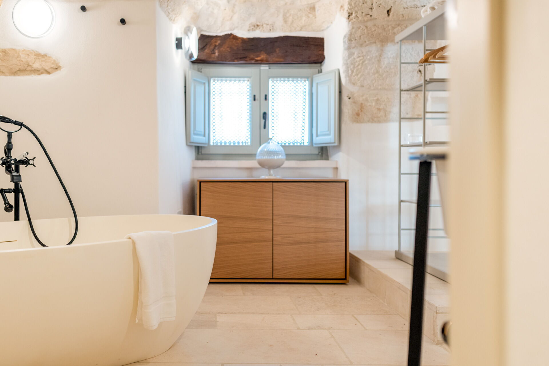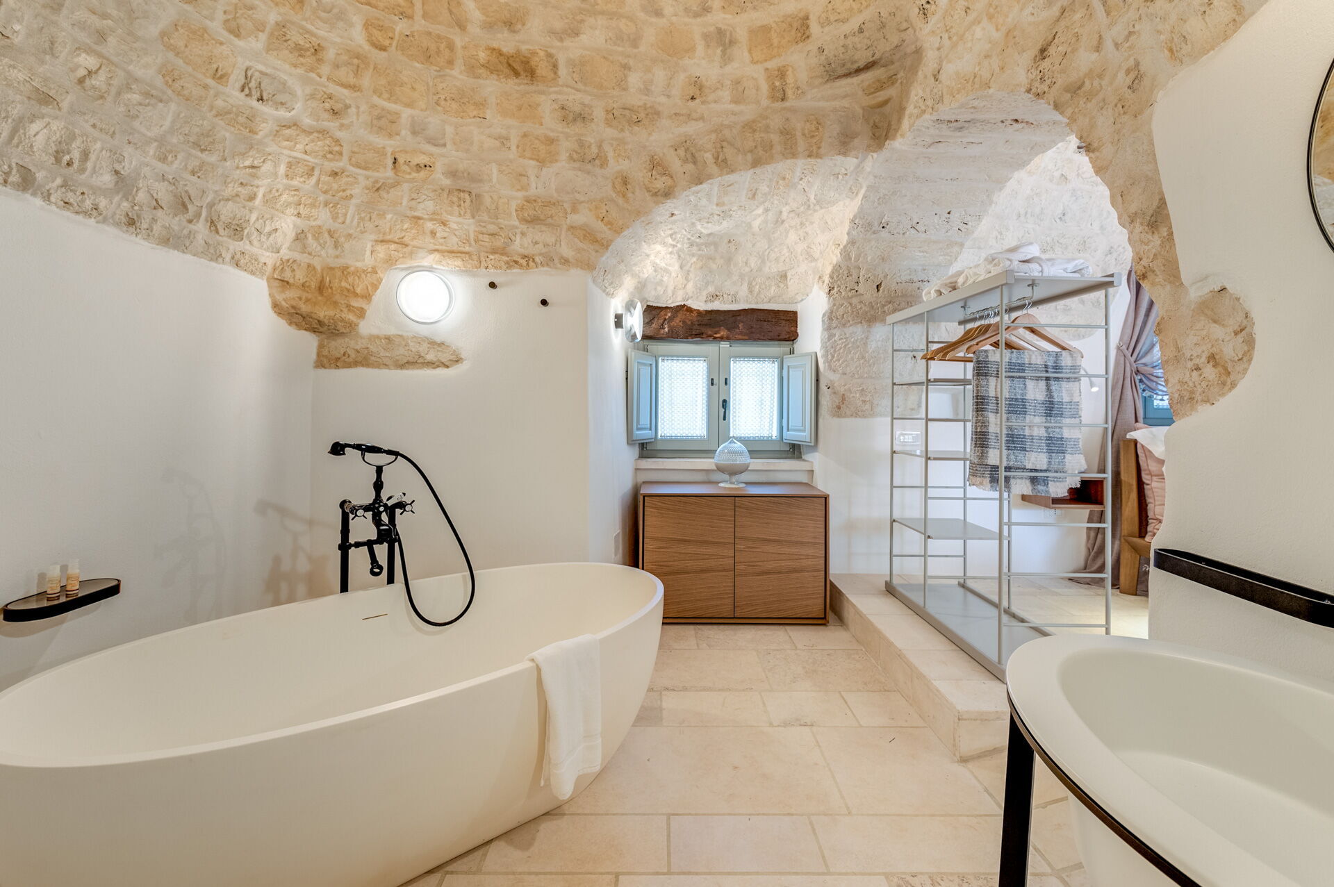 Still from the entrance, on the right, you can access the Trullo with the bedroom with a full bathroom which can also be used as a service bathroom in the living area or for the exclusive use of the bedroom.
