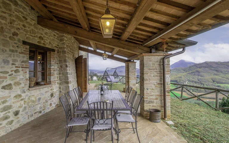 Borgo Al Castello is a gorgeous old stone farmhouse in the Umbrian countryside, 2km (1 mile) from the town of Montecastelli in the province of Perugia. Divided into six different units, the property boasts lush green surroundings and plentiful trees hugging the buildings; incredible views over the lovely landscape; a perfectly kitted out pool area with loungers, parasols, and dining areas framing it; a private gym; and additional services like private chef services, personalised tours of the area, a maid service, pre-stocked fridges, and a baby sitting service, that can be offered at an extra cost. Luxurious, historic, full of character and original details, this is a gem of a property and a proper little escape for those who wish to holiday in Italy or enjoy a villa in Umbria. Among the six units that can be found at Borgo Al Castello, however, Casa Tettoia has to be one of the most plush and desirable.