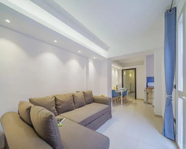 "Appartamento Leonardo" is a charming 2-room vacation rental spanning 37 square metres, situated on the ground floor and thoughtfully designed to accommodate up to 3 guests. The apartment features 1 bedroom and 1 bathroom, offering a well-organised and comfortable living experience within a compact yet functional space. Upon entering, you are welcomed by an open-plan living and dining area furnished with 1 sofabed measuring 140 centimetres, a dining table, and a flat-screen television. The 1 large double bedroom is equipped with air conditioning, ensuring a restful and climate-controlled environment. A small kitchenette is seamlessly integrated into the layout, complete with 4 hot plates, an oven, a microwave, a freezer, and an electric coffee machine, accompanied by a dedicated dining table. The bathroom is fitted with a shower, bidet, and WC, providing all essential facilities for a comfortable stay.