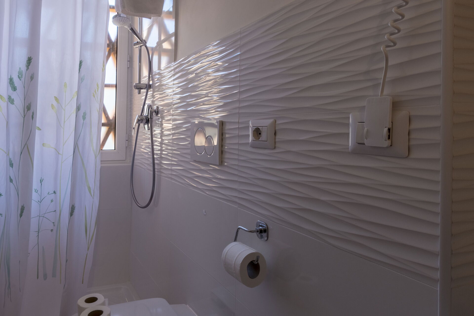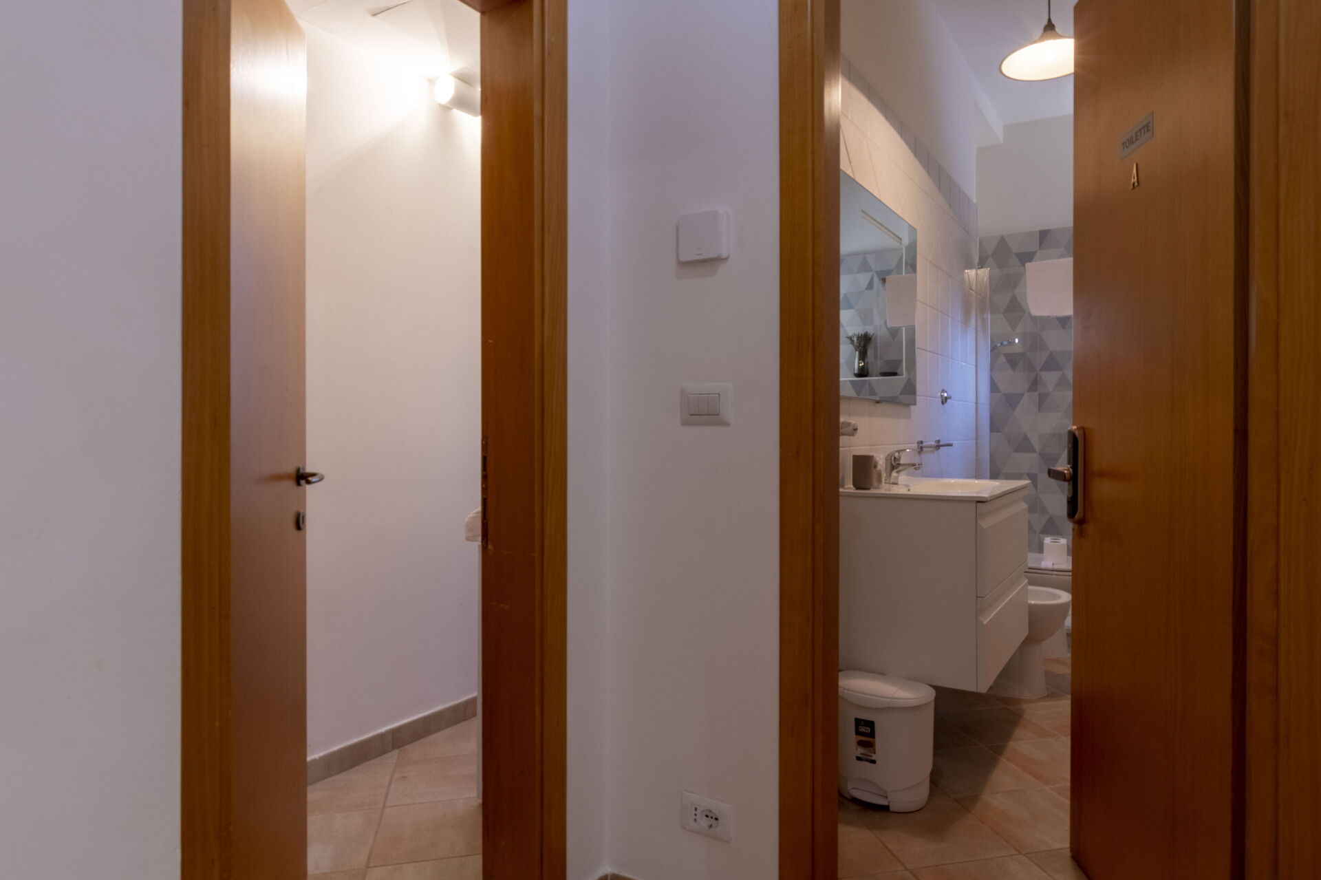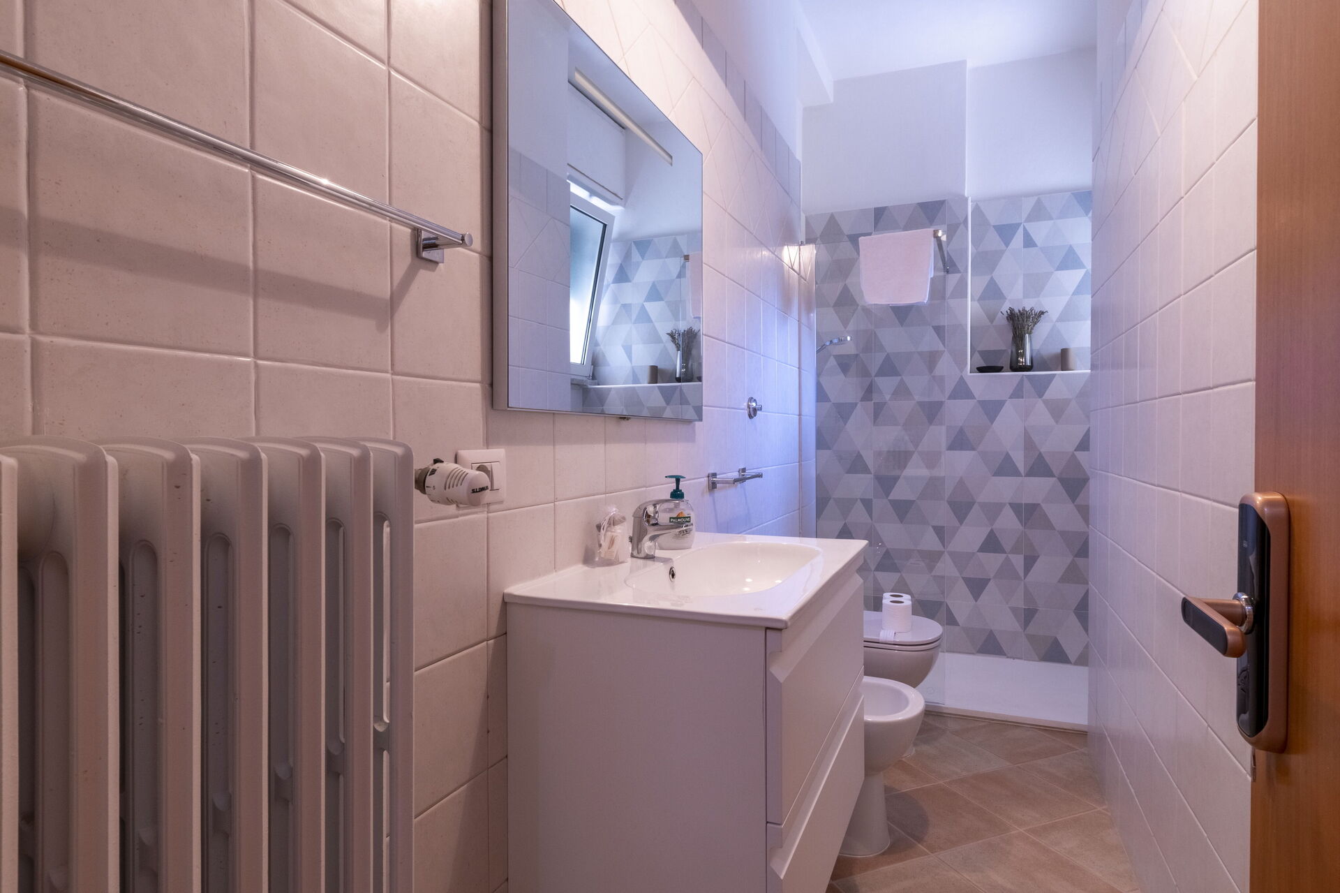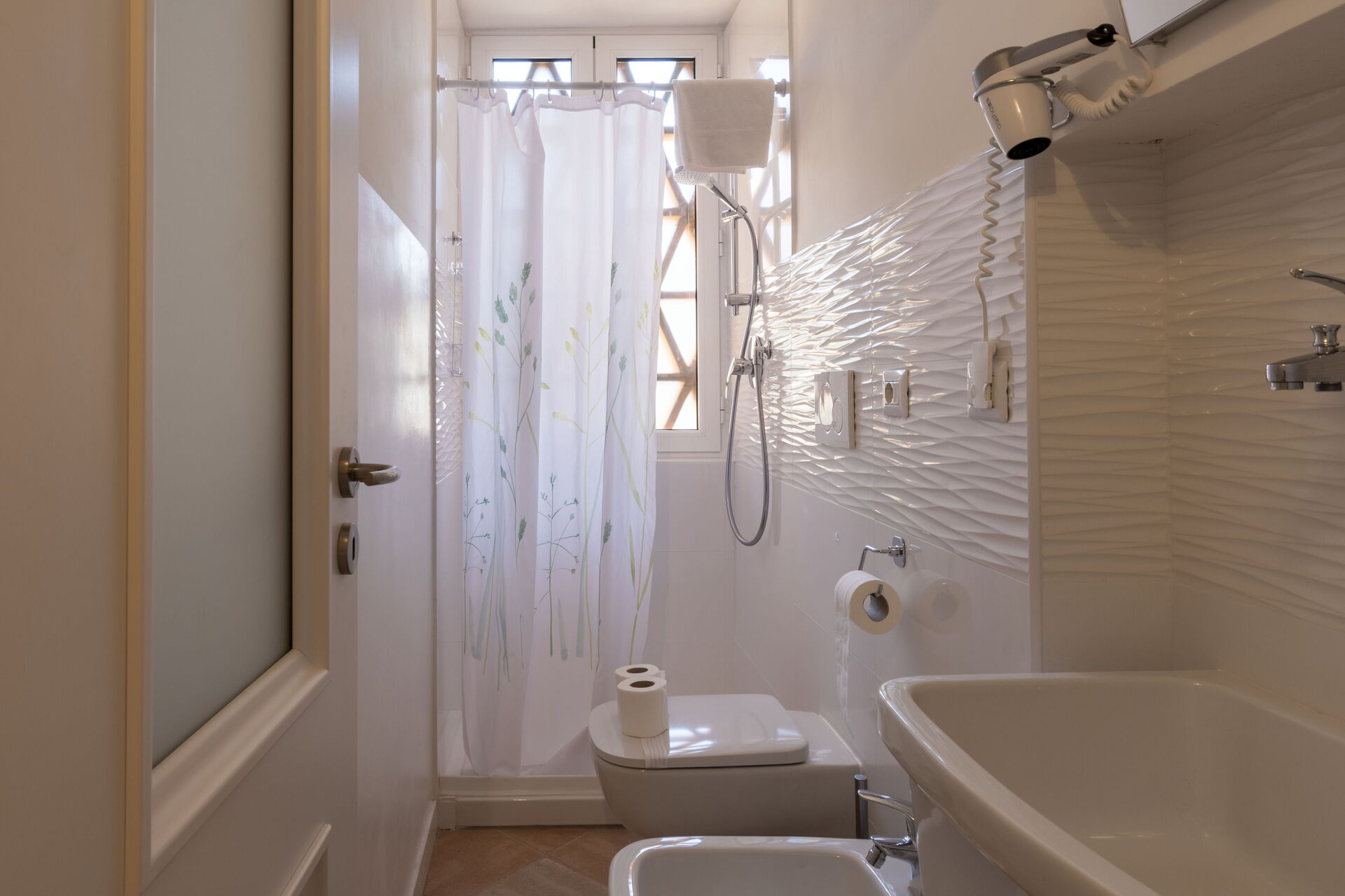 Bathroom 2: basin, toilet, bidet, shower, hairdryer.