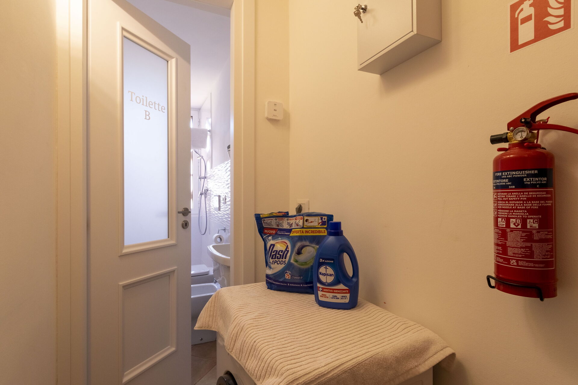 Bathroom 3: basin, toilet, bidet, shower, hairdryer, washing machine.