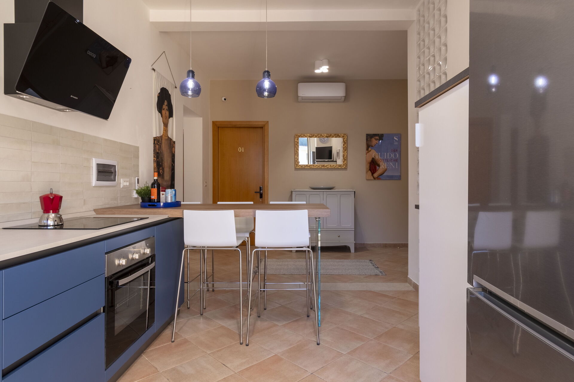 Kitchen: well equipped kitchen, dining table, dishwasher, fridge, freezer, stove top, oven, toaster, italian coffee machine, WIFI internet, air conditioning, television, exit to the balcony.