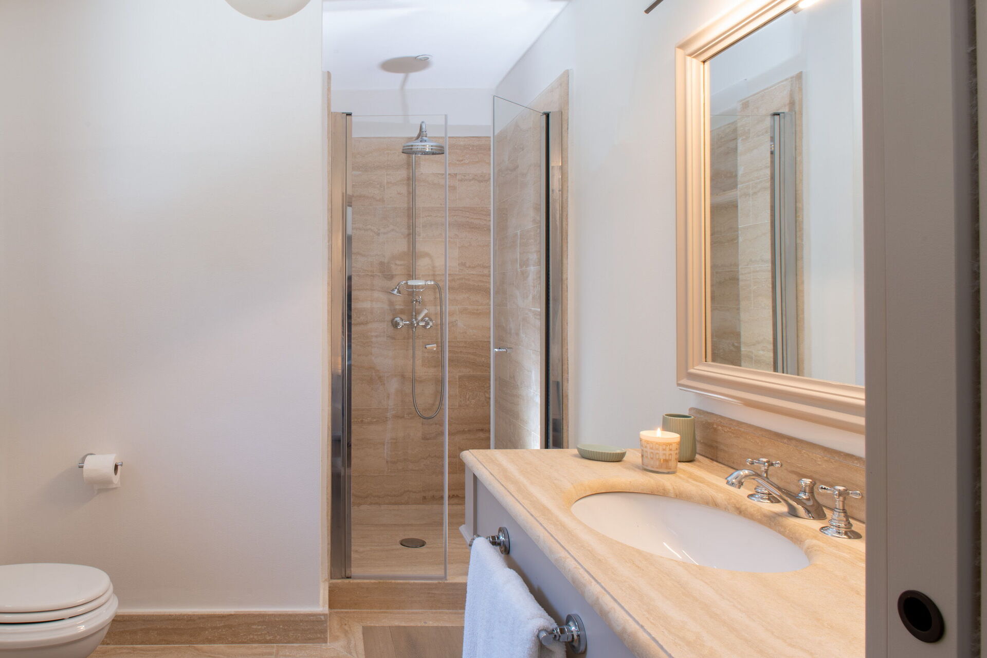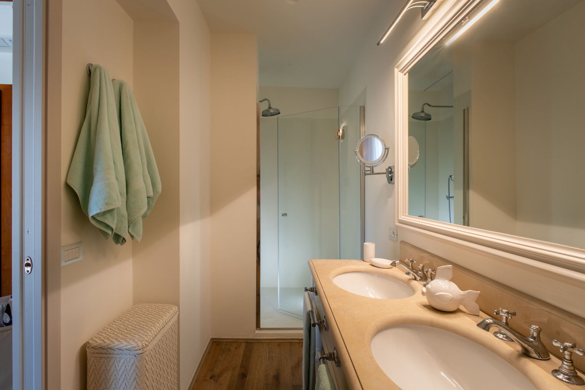 Bedroom + Ensuite Bathroom 5: king size bed, WIFI internet, air conditioning, mosquito net, armchair, working desk, double basin, toilet, bidet, shower, hairdryer, exit to the garden.