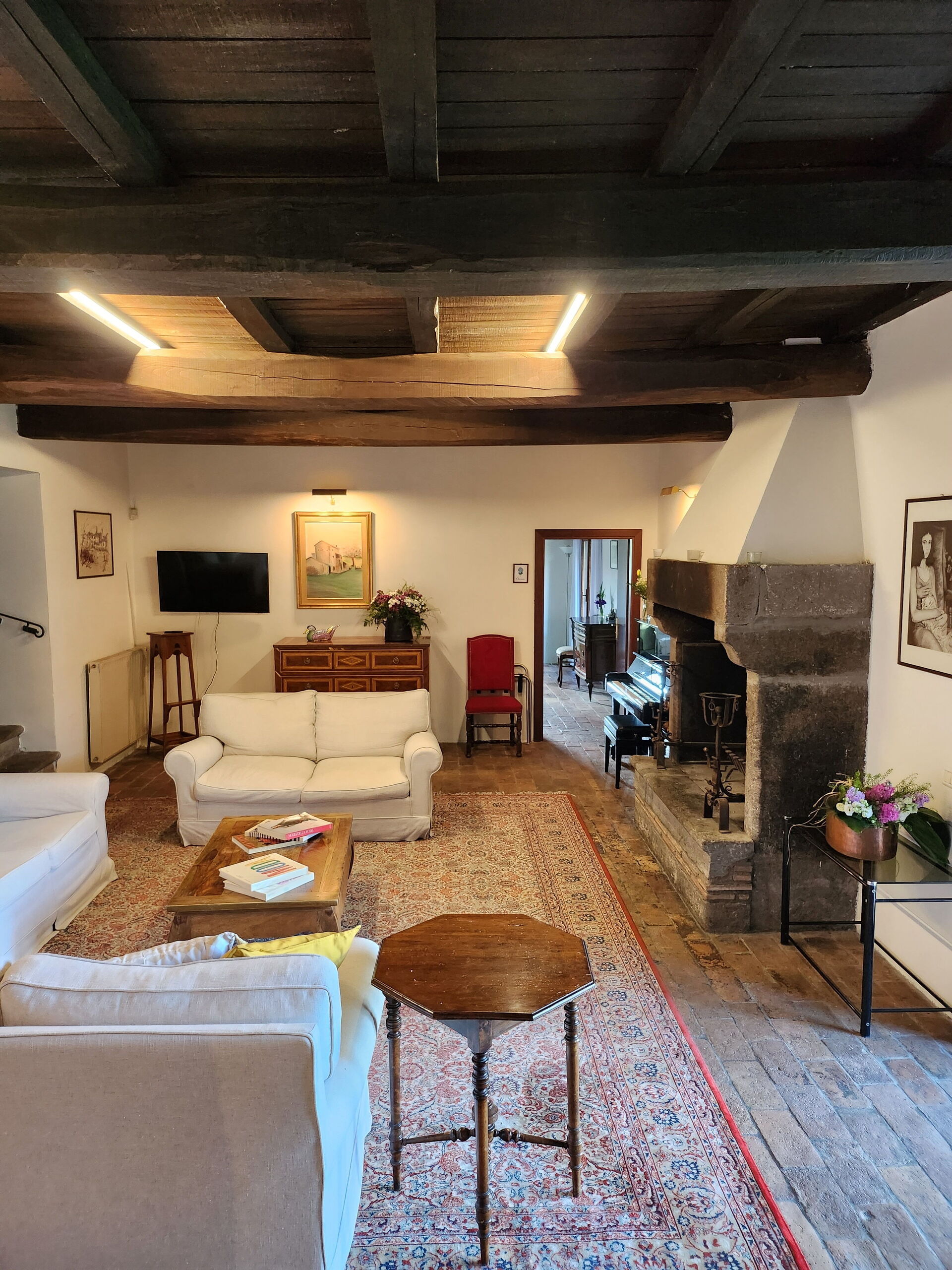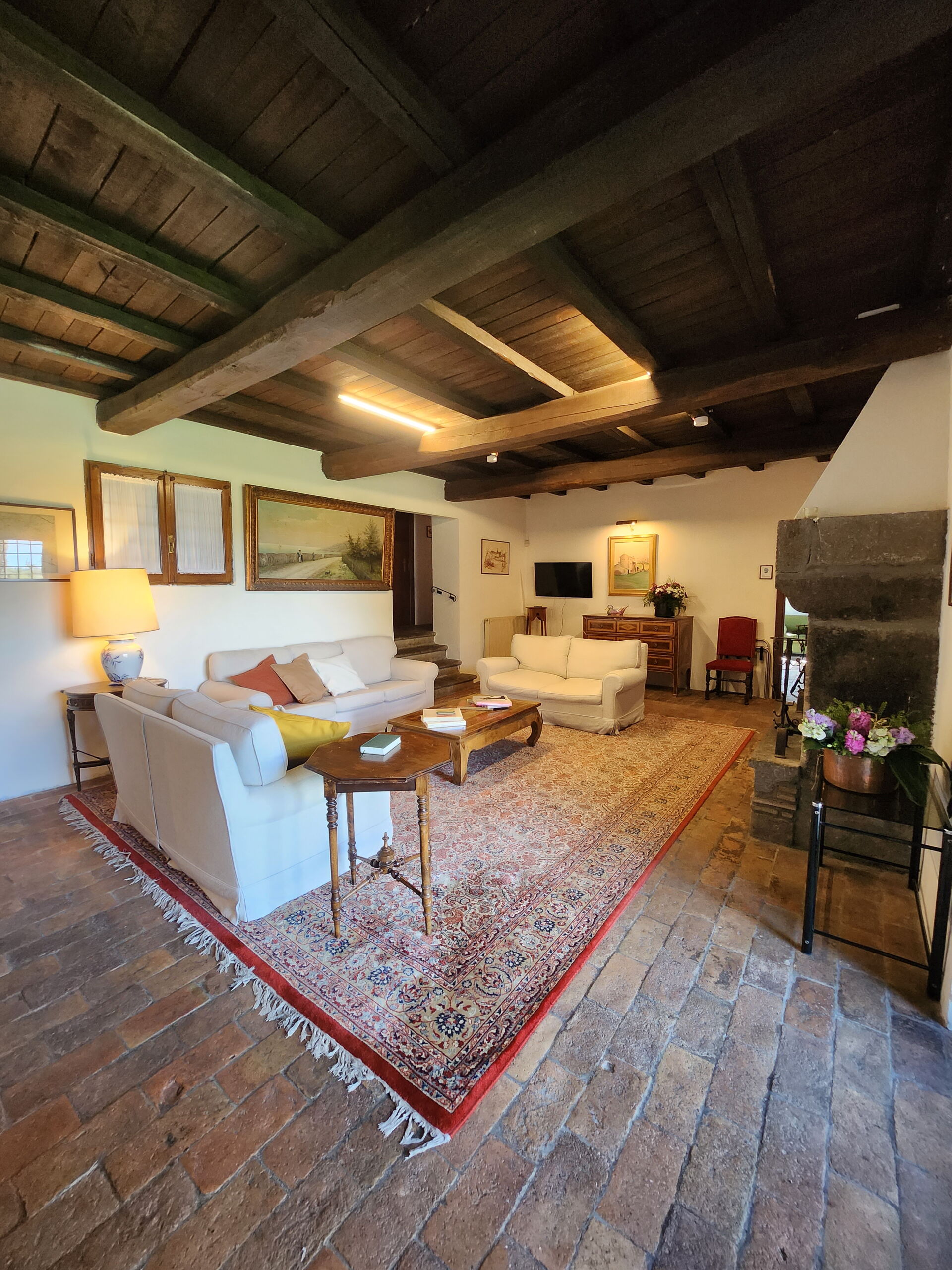 The villa has three floors and is located on the top of a hill 360 meters above sea level, close to the forest and the Vezza River. This elevated position offers an extraordinary panoramic view of the surrounding countryside. In addition, the large plot of 10,000 square meters surrounding the villa is fully fenced, offering an atmosphere of tranquility and privacy.