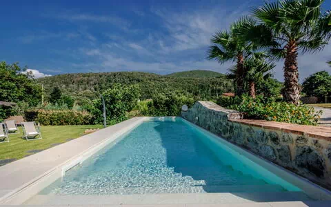 The villa is conveniently located just 2 kilometers from the center of Rio Marina and a short 2-kilometer drive from the sea. It is situated in a quiet and sunny position, surrounded by the picturesque countryside. The property offers a roofed parking area on the premises and complimentary bicycles for your use. Groups of teenagers are welcomed upon request.