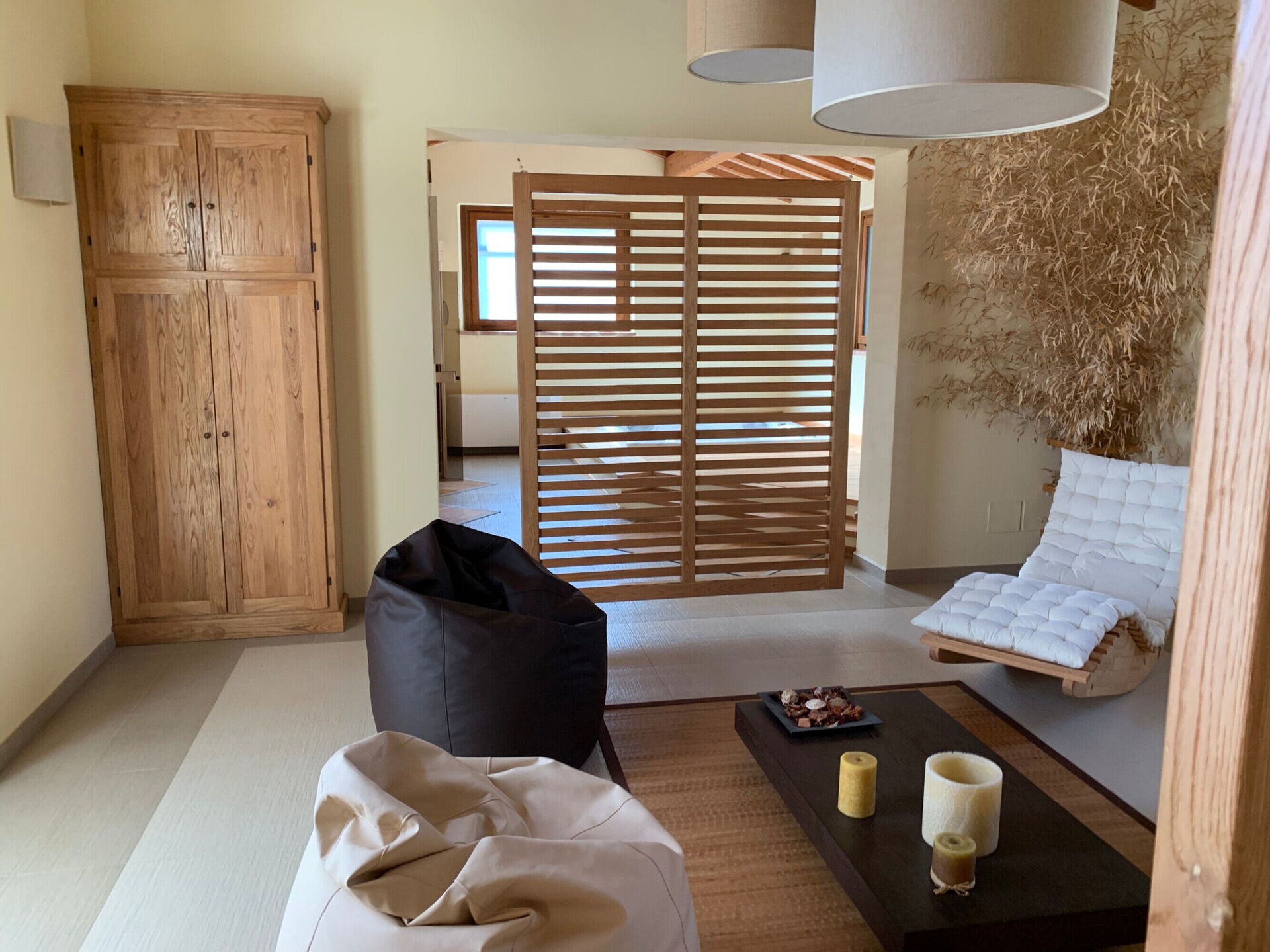 - The main building spreads over 2 levels and is divided into 5 independent apartments with private entrance. Each apartment has a living area with dining table, kitchen and tv.