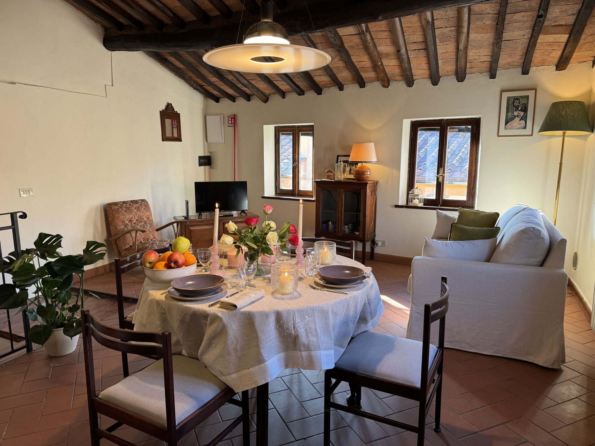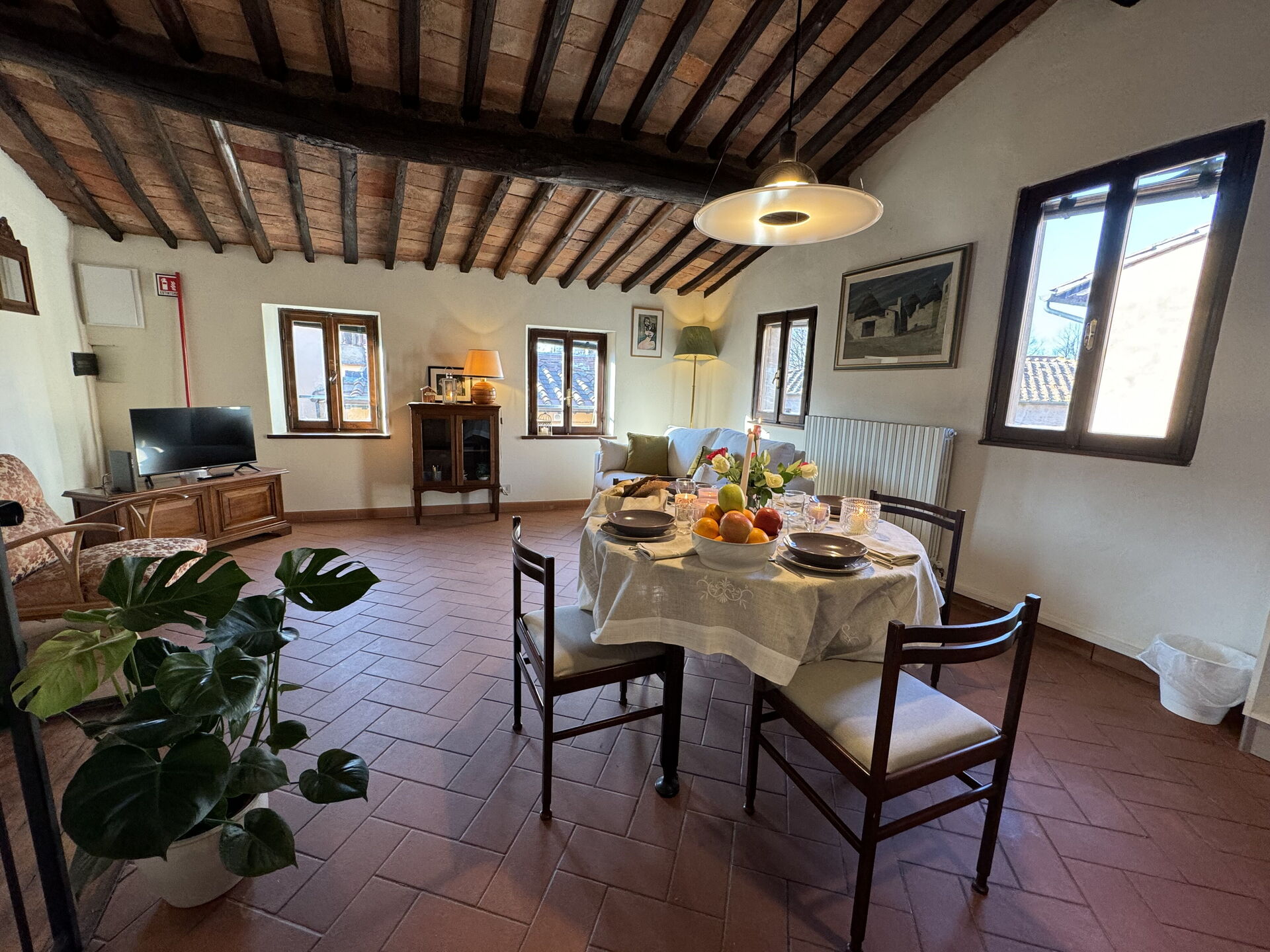 Upon arrival at Casa Toto you’ll find a lovely clean well-maintained property perfect for a splendid vacation in Tuscany. After a busy day of sightseeing, spend some time with friends and family enjoying a glass of wine - a perfect way to unwind at the end the day. There is a kitchen including toaster, stove and refrigerator, as well as, plenty of tableware and cutlery for up to four people. If you prefer to dine 'al fresco', there is a fully furnished balcony where you can enjoy the weather while dining outdoors.