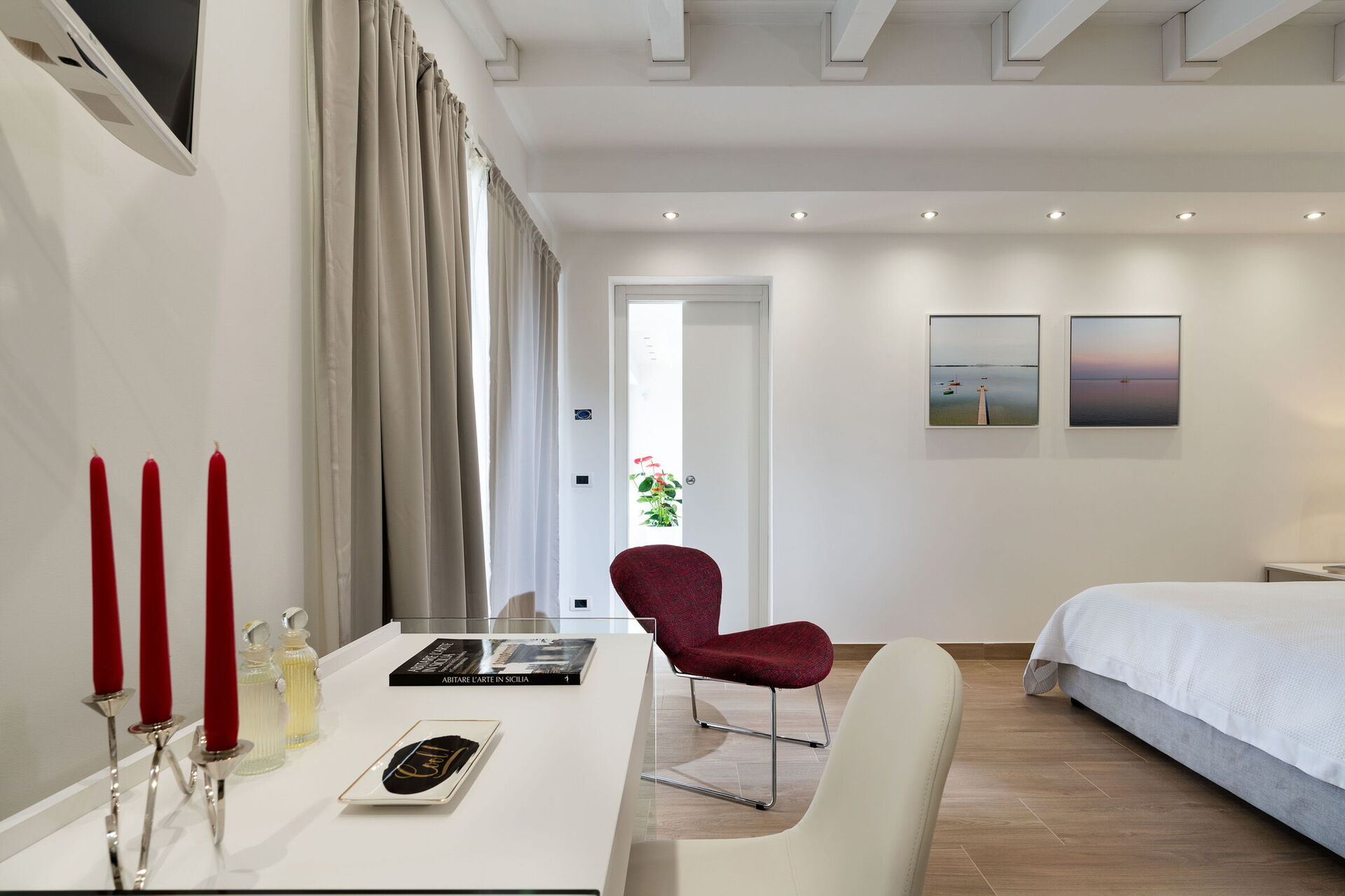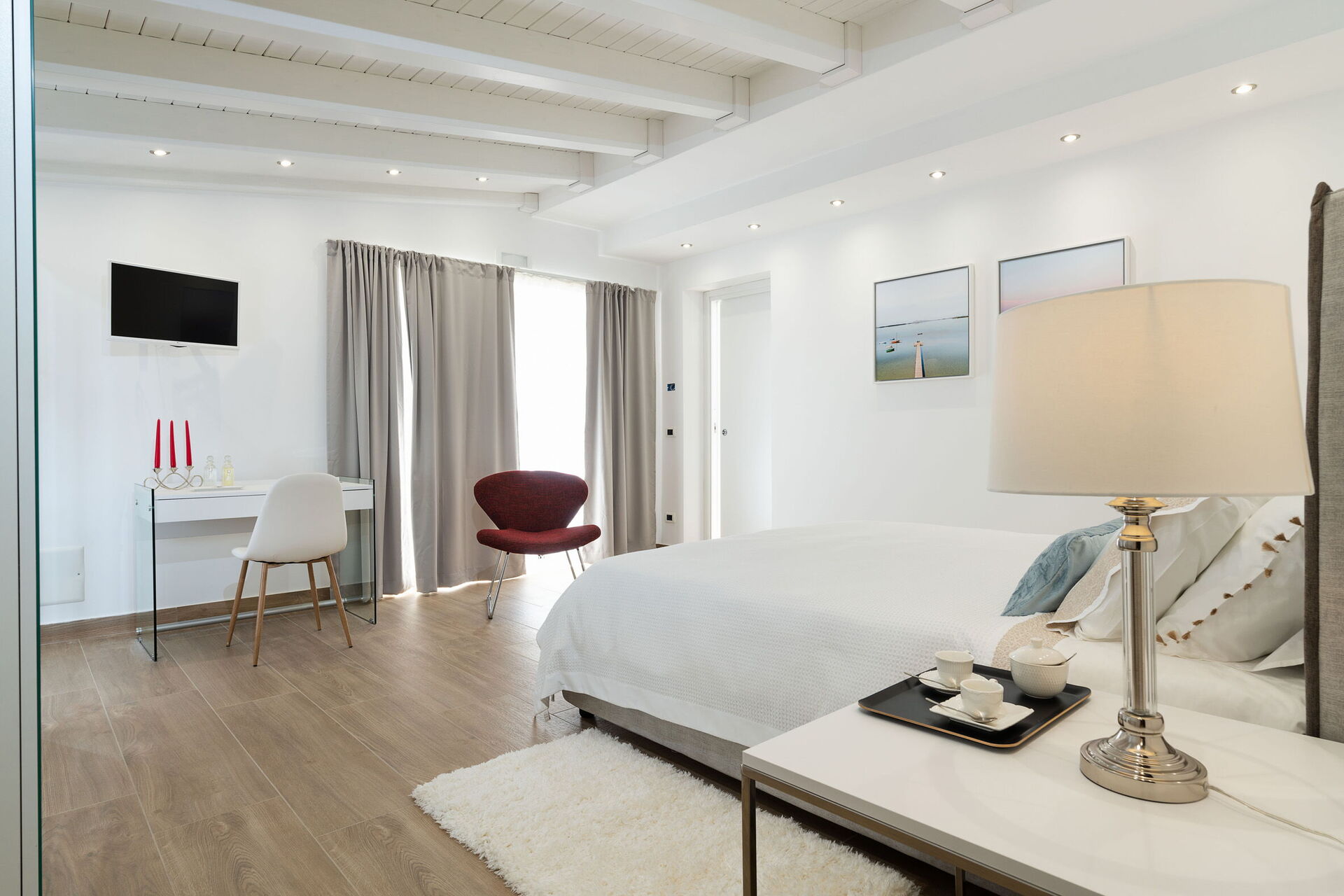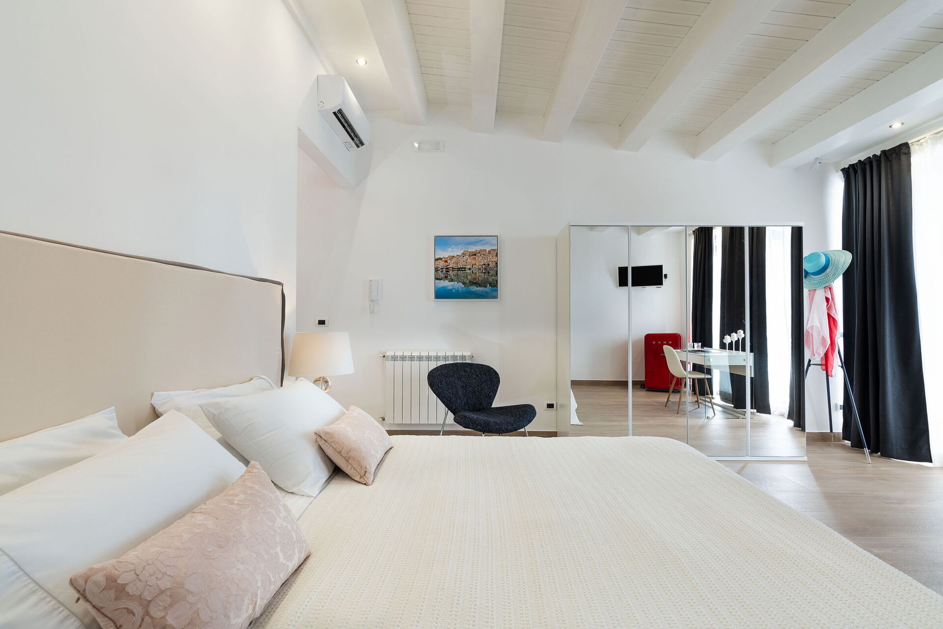 Bedroom: double bed, WIFI internet, internet, air conditioning, television, armchair, working desk, exit to the terrace.