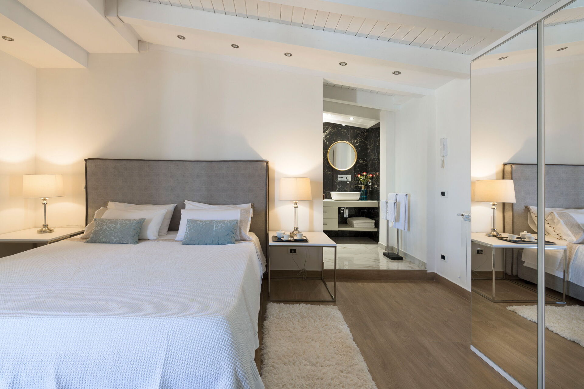 Bedroom + Ensuite Bathroom: double bed, WIFI internet, internet, air conditioning, basin, toilet, bidet, shower, smoke detector, co2 detector, exit to the garden.