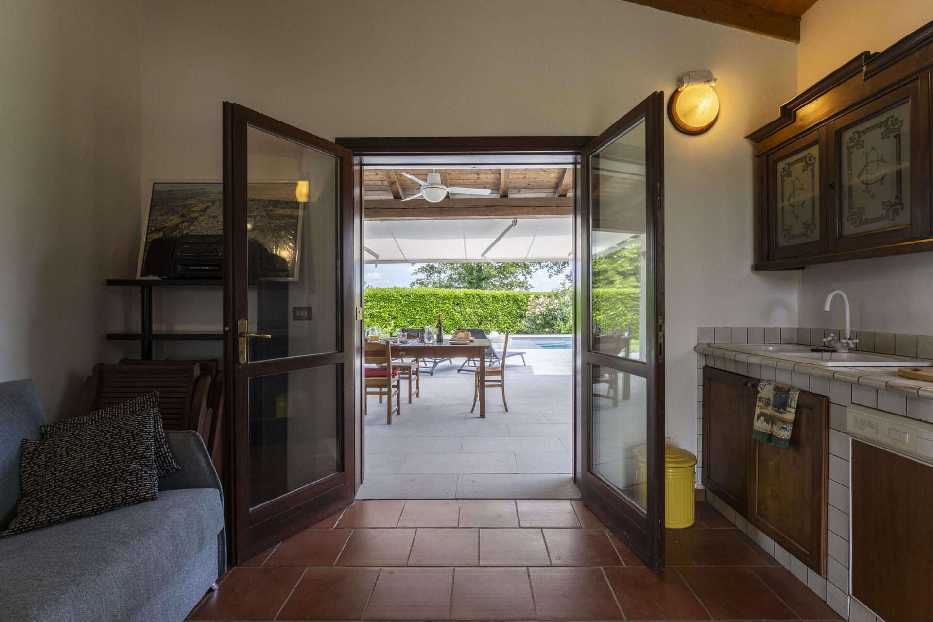 After arriving you will be greeted by the owner or manager where you’ll find a beautiful clean well-maintained property with views of the hills ideal for a peaceful vacation in Emilia Romagna. After a hectic day of shopping, spend some time with friends and family poolside enjoying a glass of wine - a perfect way to relax at the end the day. Also available outside are a barbecue grill and patio. If you enjoy cooking for family and friends there is a well-equipped kitchen including coffee machine, stove and refrigerator, as well as, plenty of tableware and cutlery for up to eight people. If you prefer to dine 'al fresco', there is a fully furnished patio where you can enjoy the weather while dining outdoors.