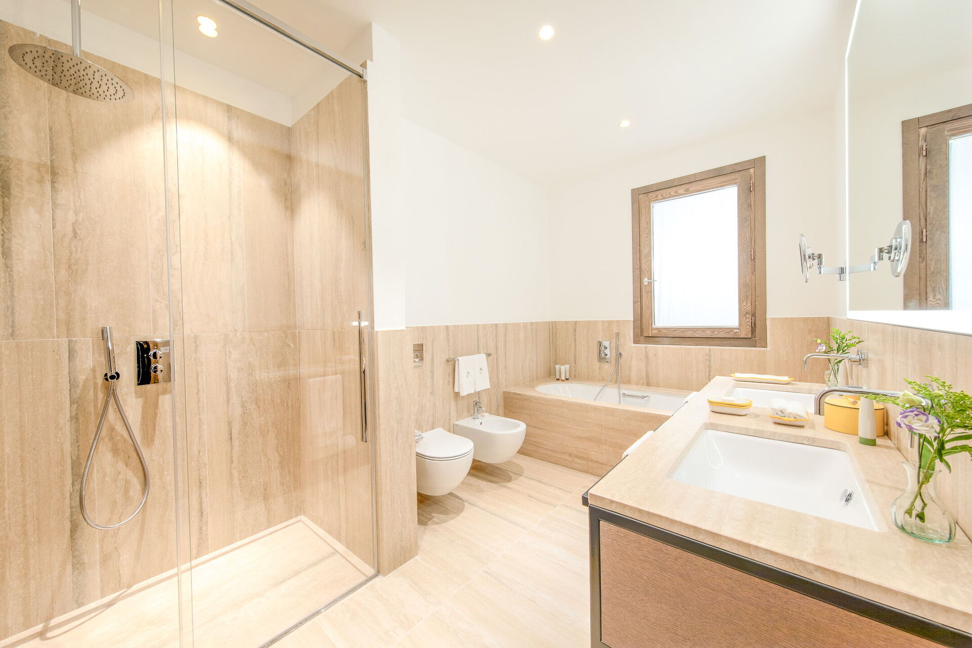 Bedroom + Ensuite Bathroom 3: king size bed (length: 2m, width: 1.8m), armchair, television, safe, air conditioning, toilet, bidet, double basin, shower, hairdryer, WIFI internet, exit to the balcony.