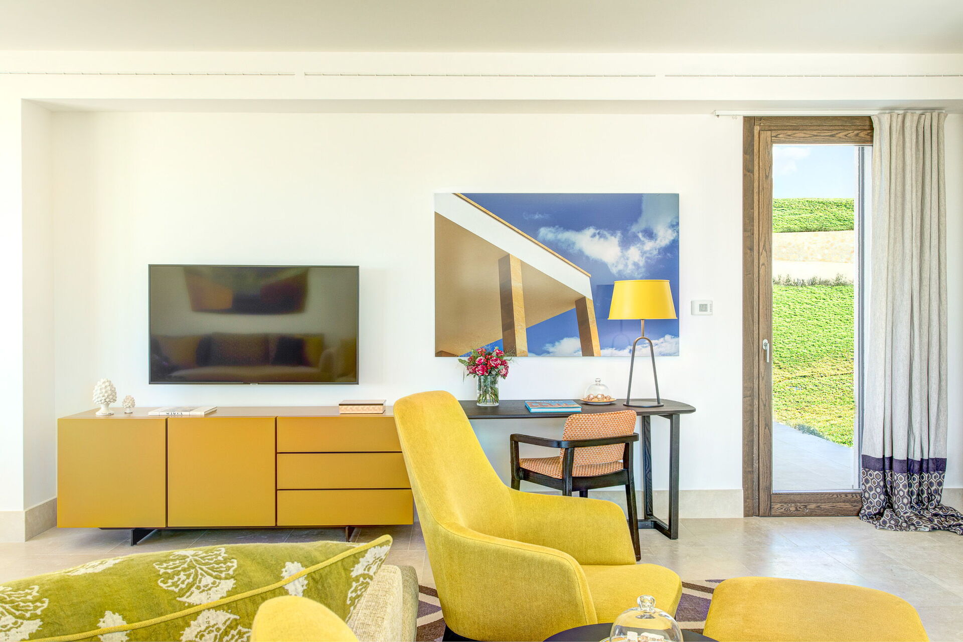-Panoramic Views: Wake up to breathtaking vistas of Verdura Resort's golf courses and the Mediterranean Sea from your private terrace, providing an idyllic backdrop for your vacation.