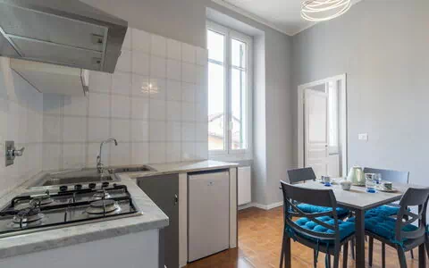 The apartment is furnished beautifully and cozily. It has a kitchenette equipped with an oven, 4 gas rings, a toaster, and a kettle. There is also a bathroom with a bathtub, bidet, and toilet. Gas heating is available from November 1st to April 8th. Other amenities include a washing machine and free WiFi internet access. Please note that the fridge does not have a freezer compartment.