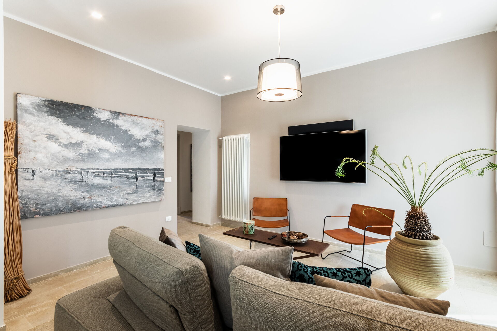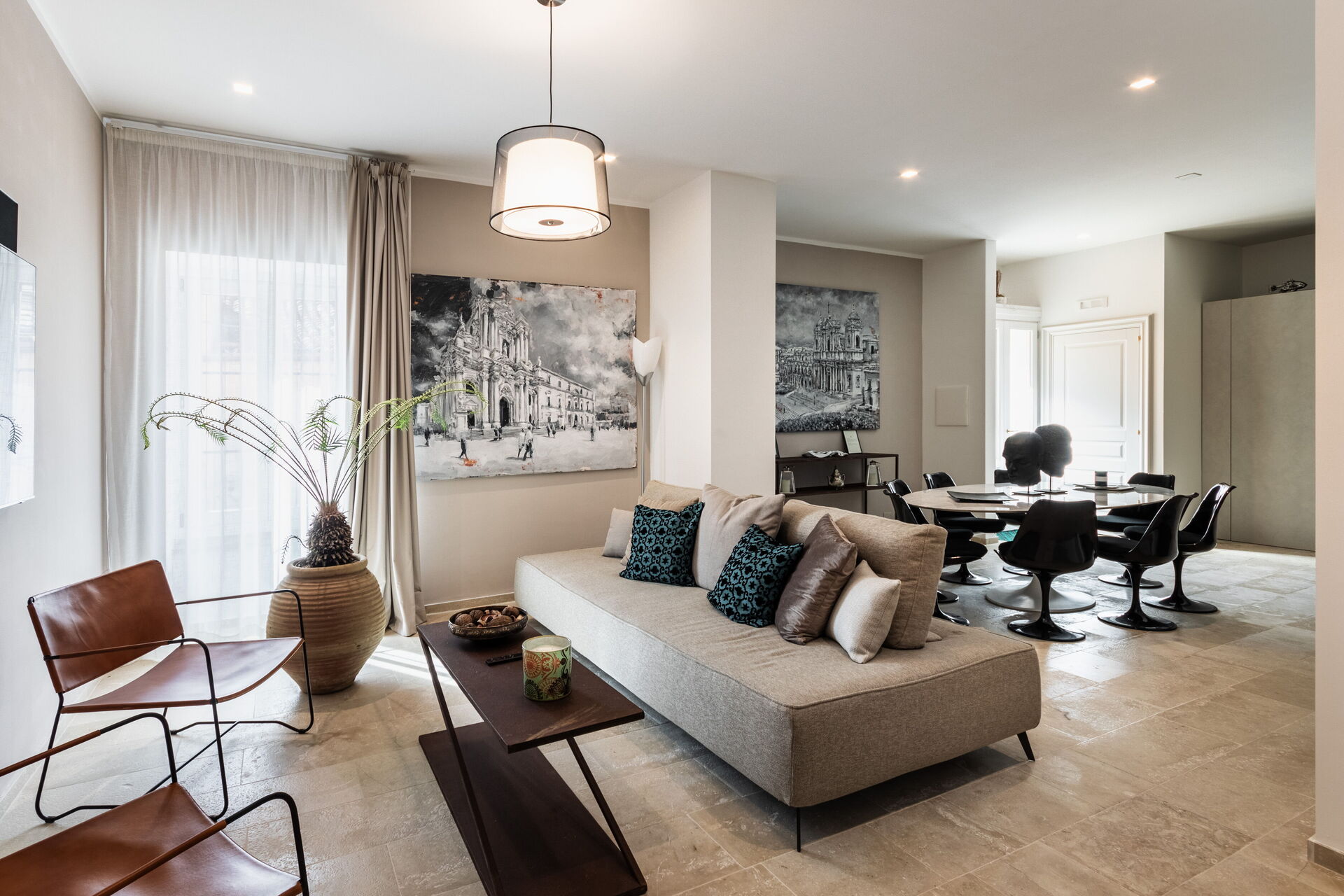 Jocanatro is a luxurious foot-à-terre in a fully renovated historic building, located in the upper part of the city of Noto. A large open space, the beating heart of this residence, unites kitchen and living room in an embrace of modern design and timeless functionality. The kitchen, equipped with the latest technology, becomes a space where culinary creativity merges with everyday comfort, while the living room welcomes guests in an atmosphere of luxury and hospitality. You will then discover three bedrooms, each a masterpiece of design and comfort. Two spacious double rooms welcome you with luxurious embraces, enriched with fine fabrics and handcrafted details that enhance the timeless elegance; two spacious bathrooms complete the ensemble.