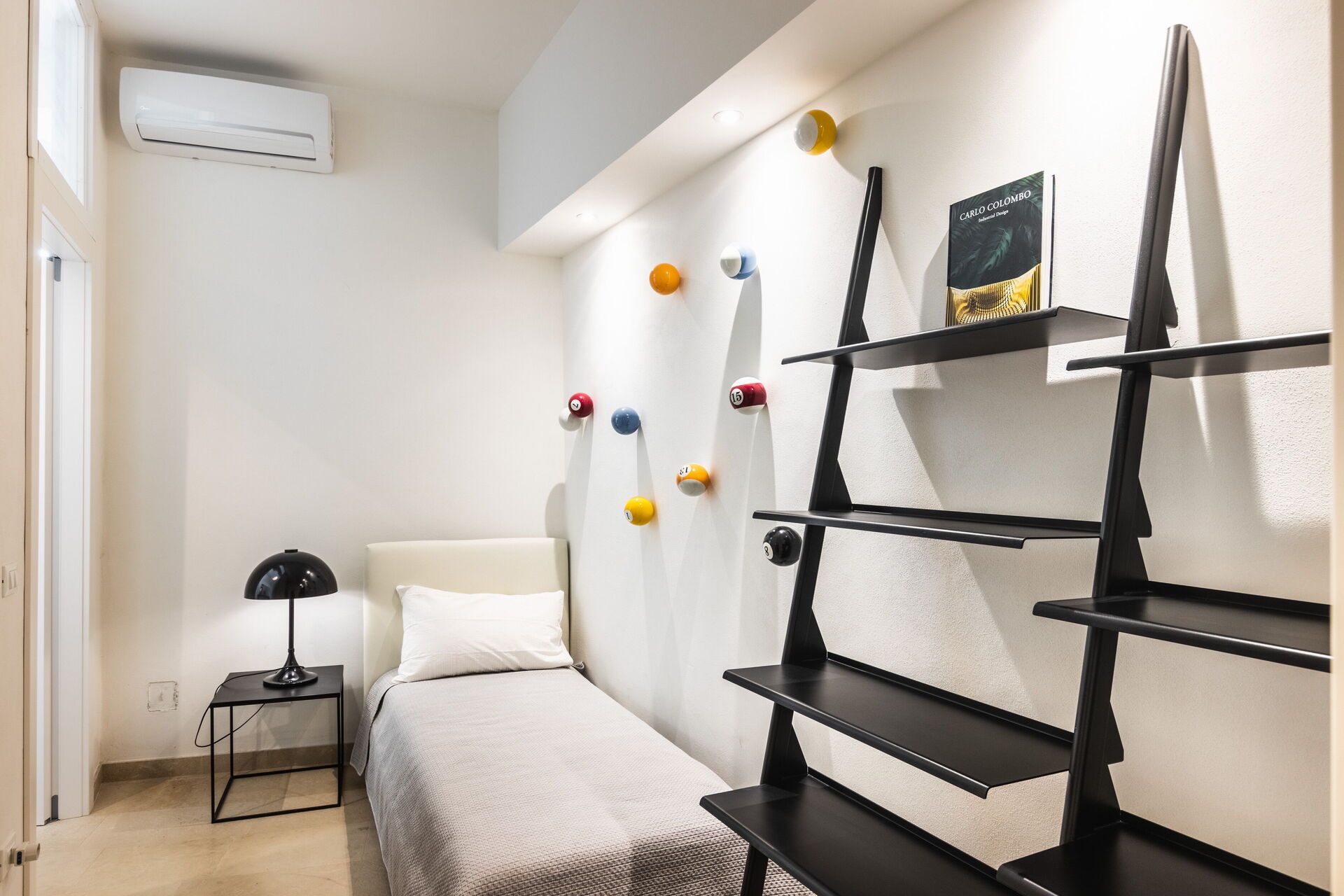 Bedroom + Ensuite Bathroom: single bed, WIFI internet, air conditioning, basin, toilet, bidet, shower, hairdryer.