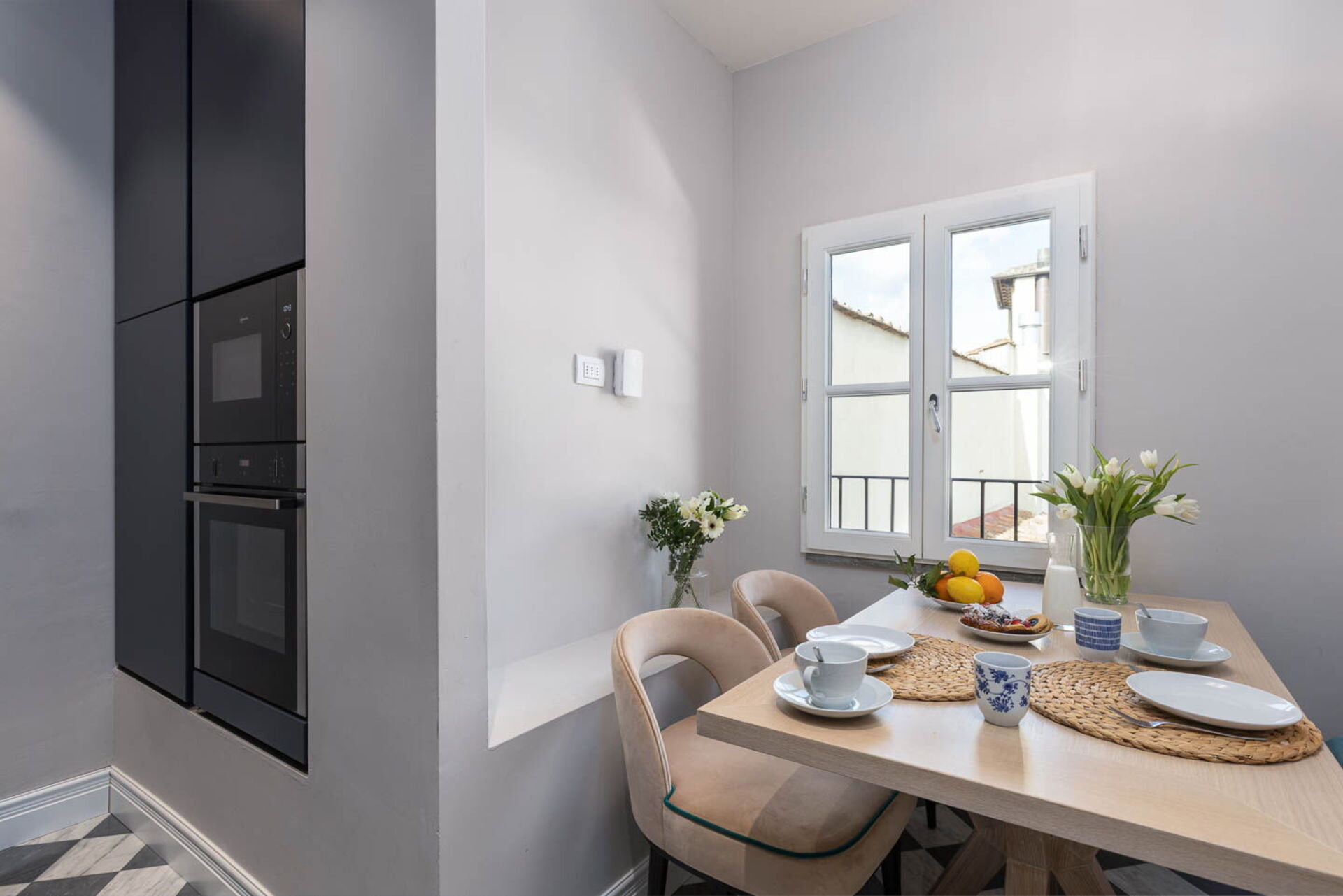 When you arrive you will be greeted by the owner or manager where you’ll find a beautiful clean well-maintained property with views of the city perfect for a relaxing holiday in Tuscany. After a hectic day of visiting museums, spend some time with friends and family enjoying a glass of wine - a perfect way to relax at the end the day. Sharing a meal with friends and family is a big part of the Tuscan culture. Take advantage of the well-equipped kitchen to prepare meals using local produce while on your vacation. The kitchen includes coffee machine, microwave, stove and refrigerator, as well as, plenty of tableware and cutlery for up to six people.