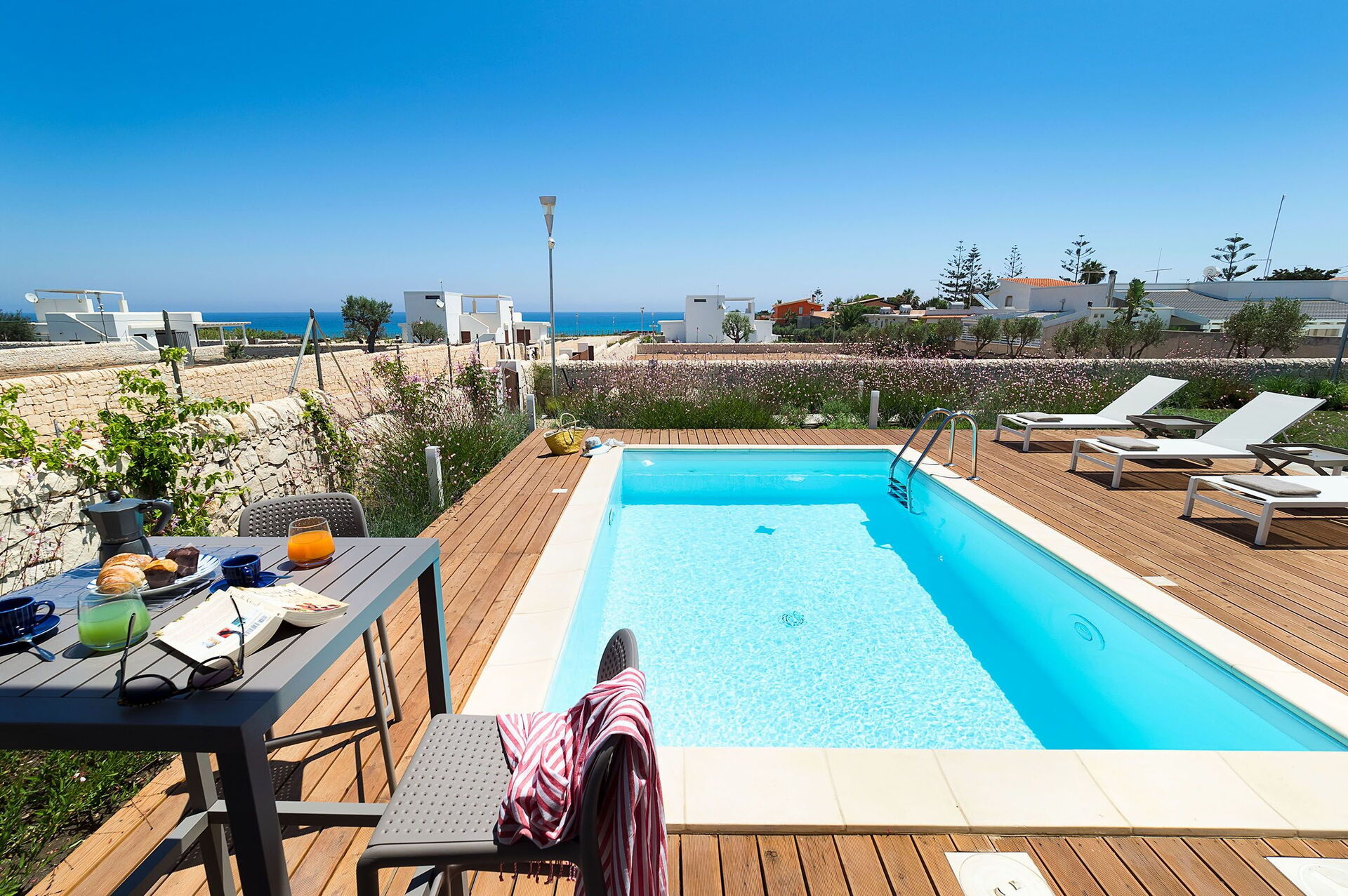 After arriving at Villa Pachino you’ll find a nice clean well-maintained property with views of the sea ideal for a splendid holiday in Sicily. For your pleasure you will find a private pool where you can unwind while enjoying a nice cold beverage after a busy day of sightseeing. Also available outdoors are a hot tub and barbecue grill. There is a kitchen including coffee machine, microwave, toaster, stove and refrigerator, as well as, plenty of tableware and cutlery for up to eight people. If you prefer to dine 'al fresco', there is a fully furnished terrace where you can enjoy the weather while dining outdoors.