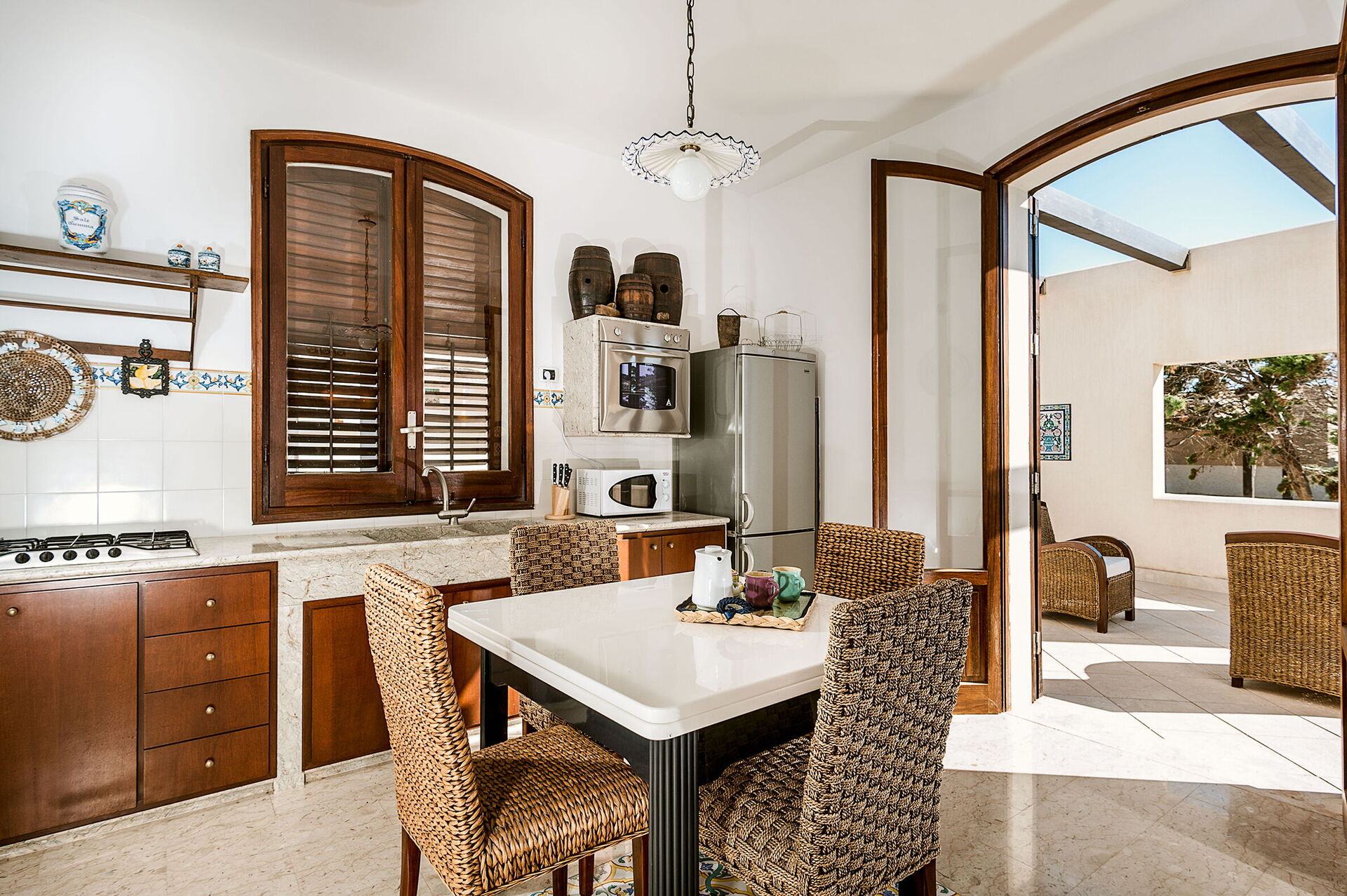 Upon arrival you’ll find a nice clean well-maintained property with views of the sea perfect for a peaceful vacation in Sicily. After a busy day of shopping, spend some time with friends and family poolside enjoying a glass of wine - a perfect way to relax at the end the day. Sharing a meal with friends and family is a big part of the Italian culture. Take advantage of the kitchen to prepare meals using local produce while on your holiday. The kitchen includes coffee machine, microwave, toaster, stove and refrigerator, as well as, plenty of tableware and cutlery for up to six people. Dine 'al fresco' like a real Italian, the fully furnished terrace is the ideal setting to enjoy food, family and the beautiful Italian weather.