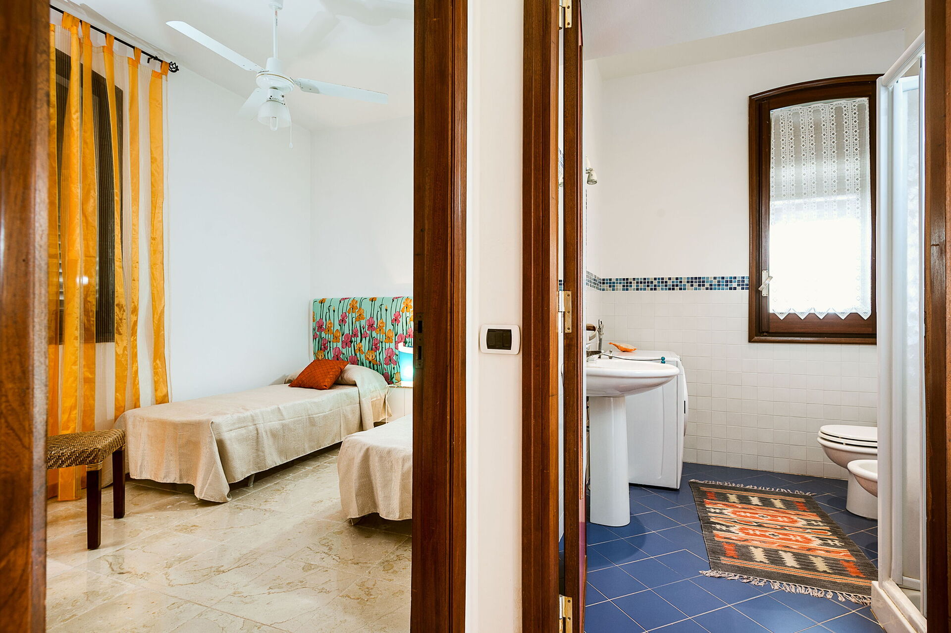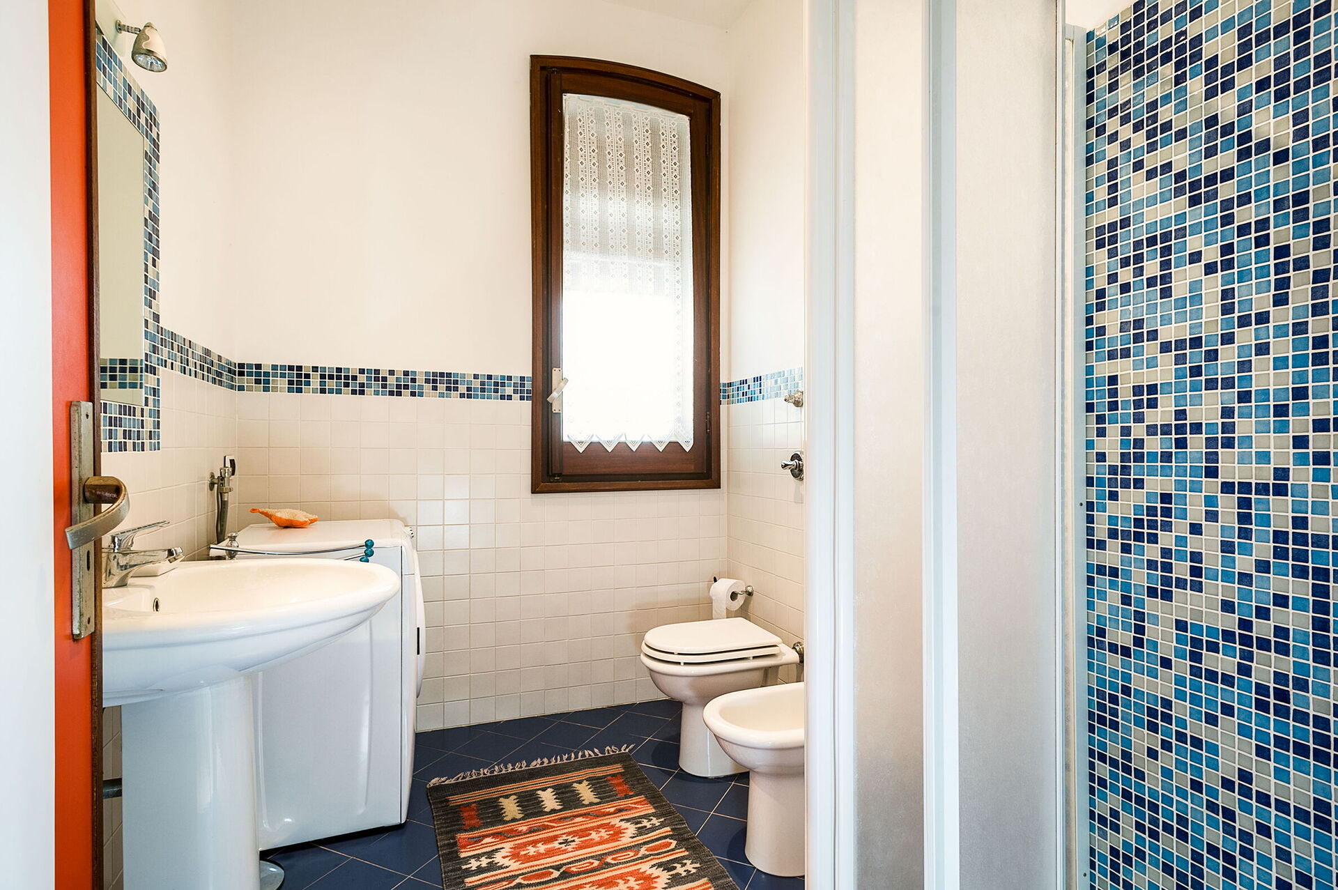 Bathroom 2: basin, toilet, bidet, shower.