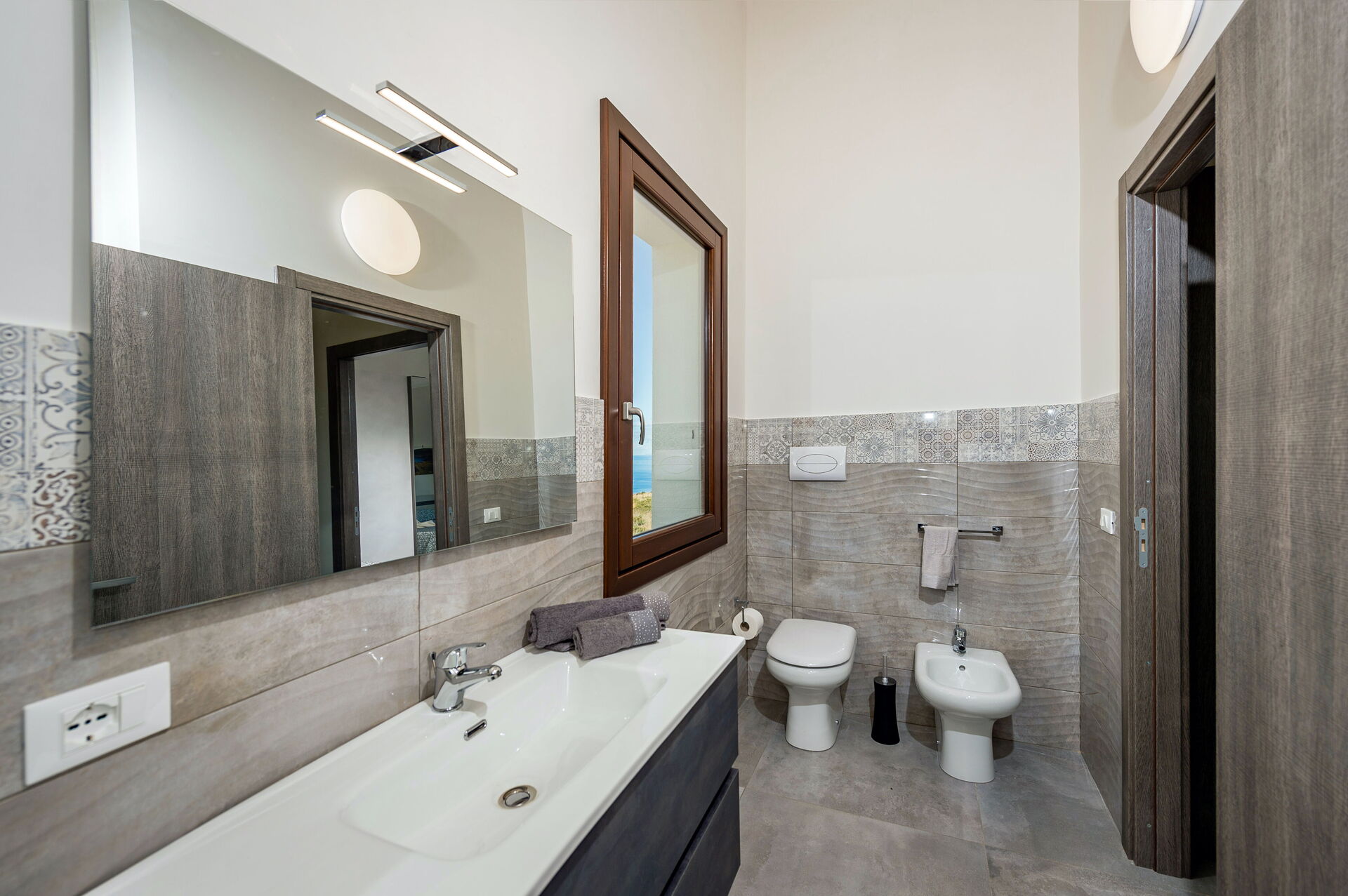 Bathroom: basin, toilet, bidet, shower.
