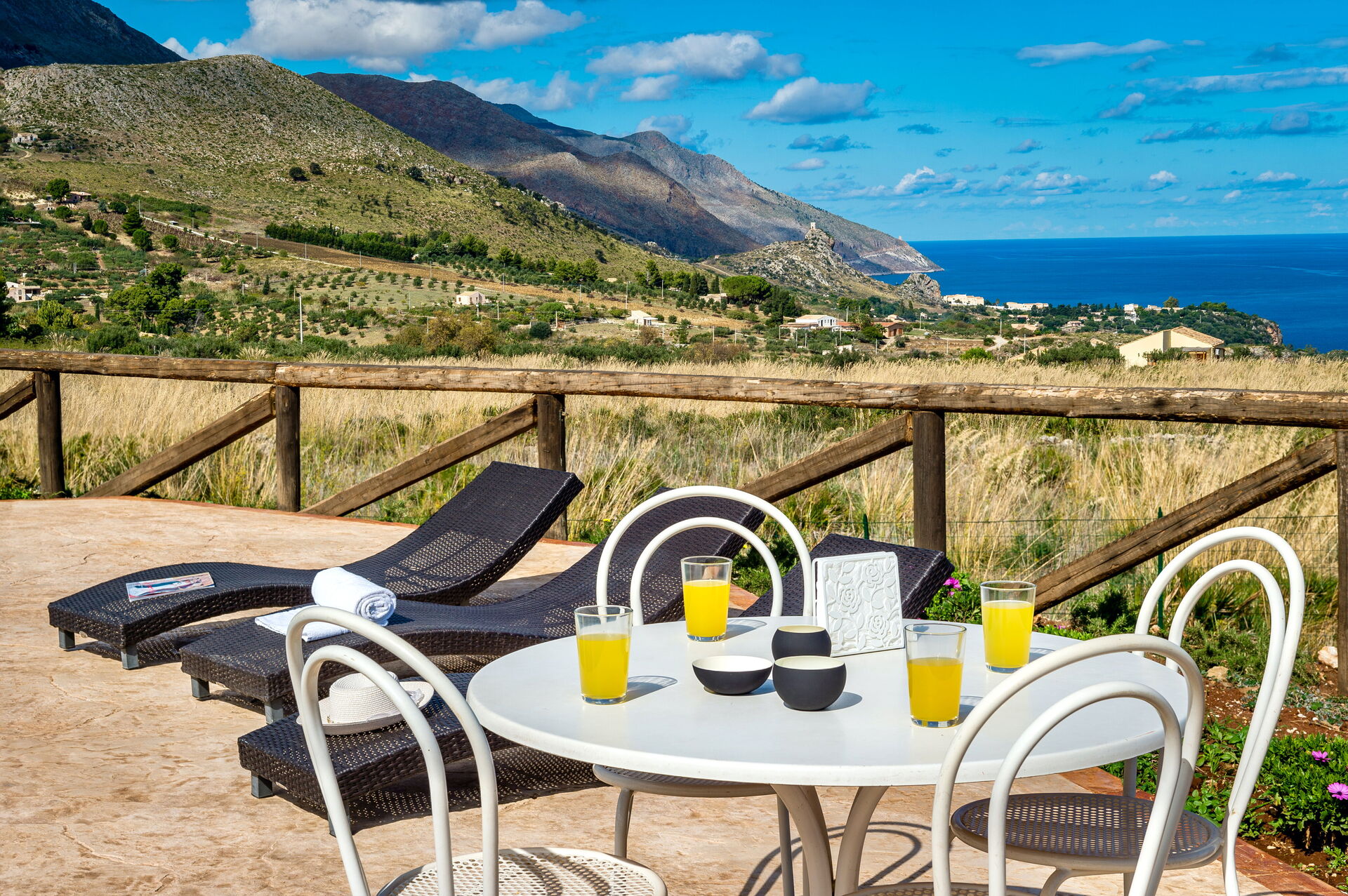 When you arrive at Villa Azzurra you’ll find a beautiful clean well-maintained property with views of the sea perfect for a splendid vacation in Sicily. After a busy day of sightseeing, spend some time with friends and family poolside enjoying a glass of wine - a perfect way to unwind at the end the day. Sharing a meal with friends and family is a huge part of the Italian culture. Take advantage of the kitchen to prepare meals using local produce while on your holiday. The kitchen includes microwave, toaster and refrigerator, as well as, plenty of tableware and cutlery for up to eight people. Dine 'al fresco' like a real Italian, the fully furnished garden is the perfect setting to enjoy food, family and the beautiful Italian weather.