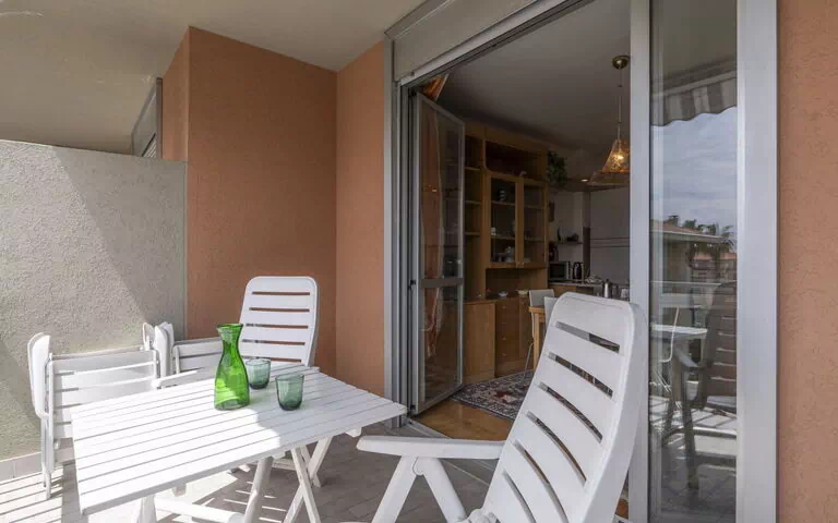 The apartment is tastefully and cozily furnished, making it an ideal choice for a comfortable vacation. It features a shower, bidet, and WC, as well as gas heating. The balcony, measuring 8 square meters, offers balcony furniture and a side view of the sea, creating a pleasant outdoor space to enjoy. Please note that the provided information "008050-LT-0055" is just an example and may not represent an actual reference code.