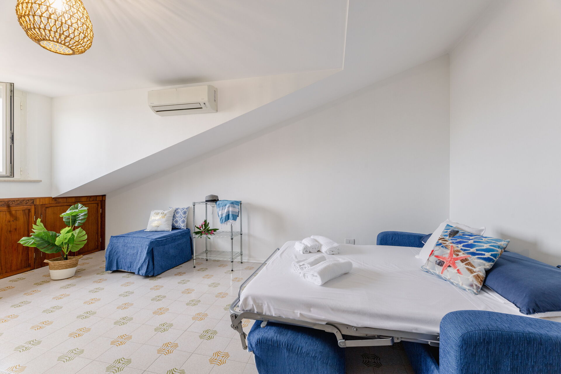 If you would like to wake up to sea views every morning, along the stunning Monte Conero stretch of the coast, then the newly listed La Terrazza Sul Conero is an ideal vacation rental in Le Marche. With a gorgeous terrace directly on the seafront, perfect for dining and relaxing al fresco while taking in those views, and both bedrooms opening up right onto this terrace, this makes for a great base if you really love to be by the sea. Sleeping up to four in the two bedrooms, with one bathroom, and a cheerful living space, this charming apartment is a perfect fit for a family with young kids or a couple who don’t mind having a spare room.