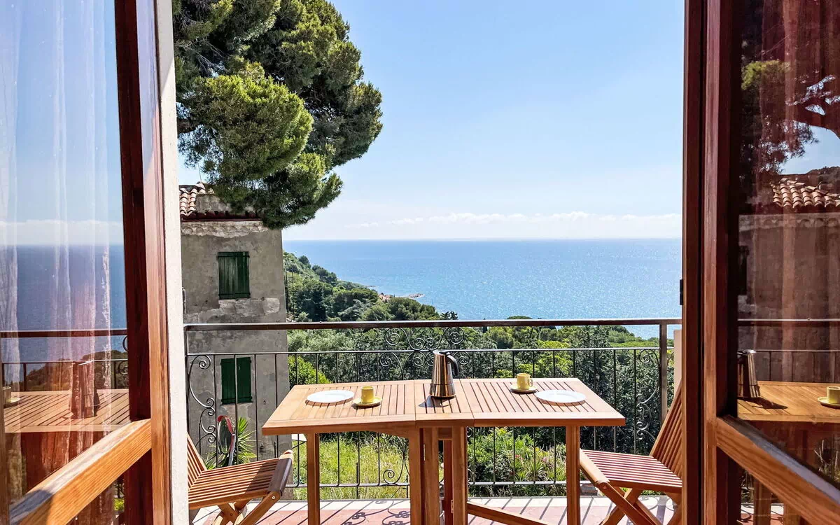 The apartment comes with practical and beautiful furnishings. It is equipped with gas heating, which is available only from November 1st to May 1st. Satellite TV and digital TV are provided for your entertainment. The kitchenette is well-equipped with induction hot plates, a toaster, and an electric coffee machine, making it convenient for preparing meals during your vacation. The balcony furniture allows you to enjoy the stunning views from the comfort of the outdoor space.