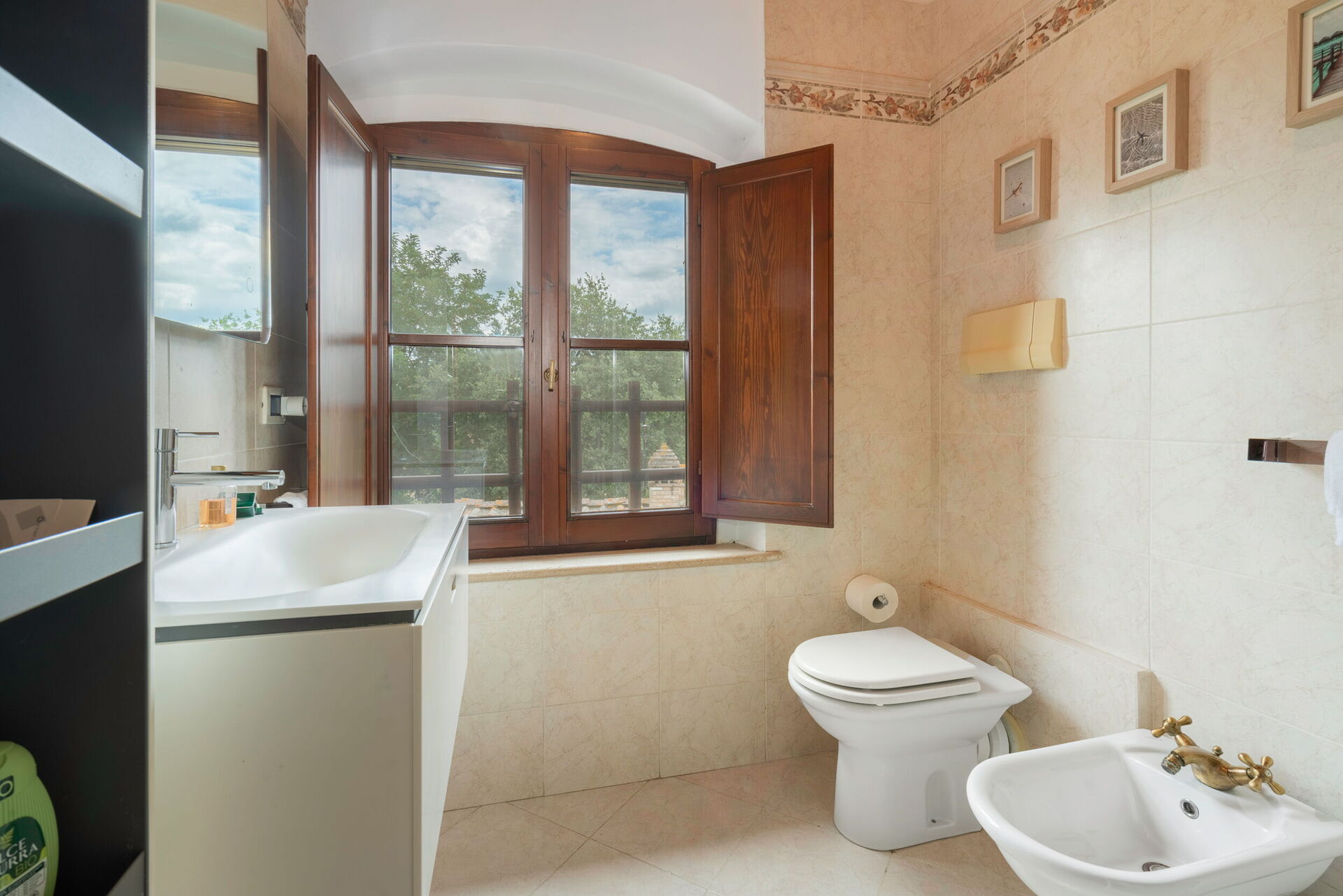 Bathroom: basin, toilet, bidet, shower, hairdryer, mosquito net.