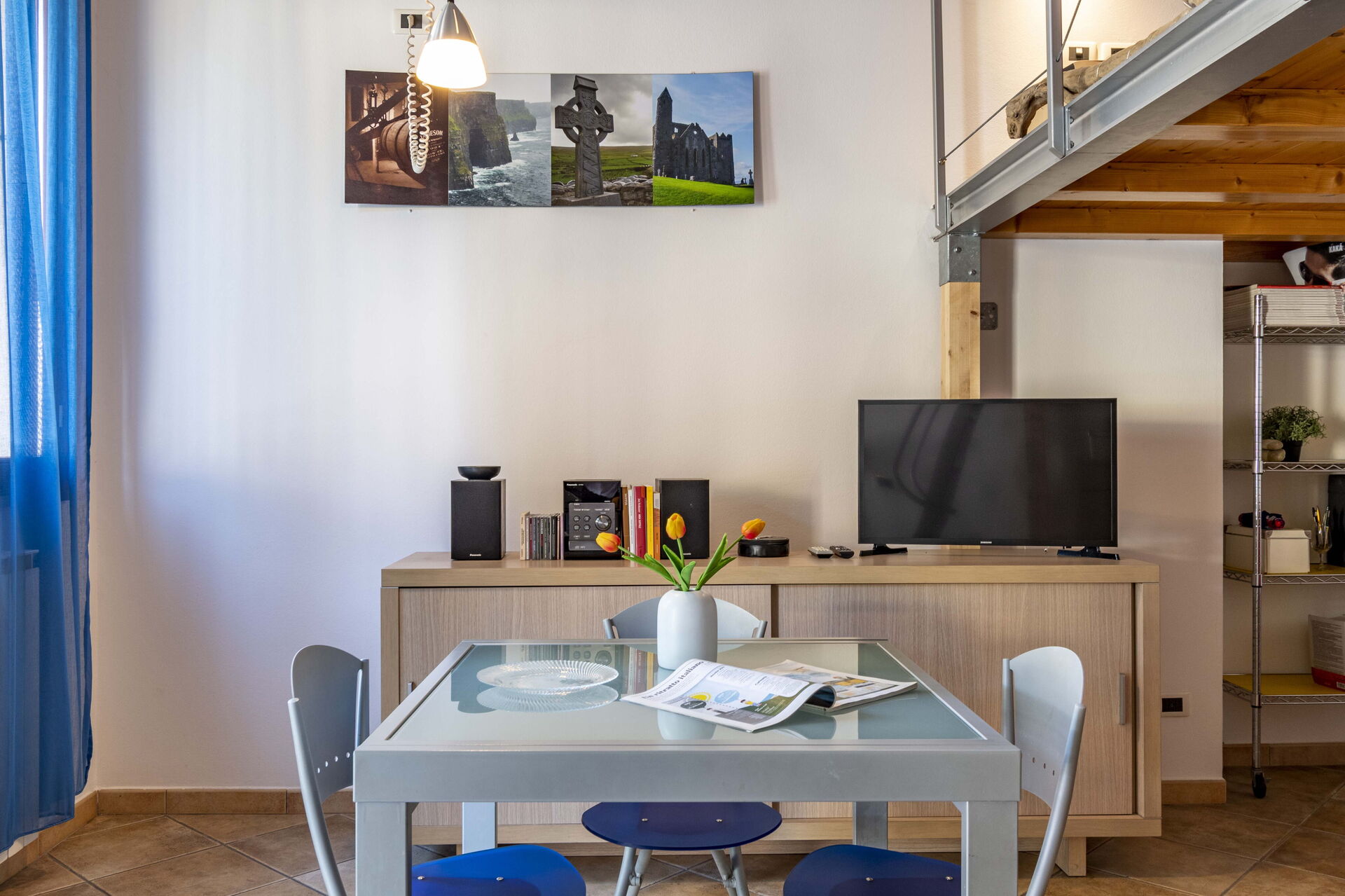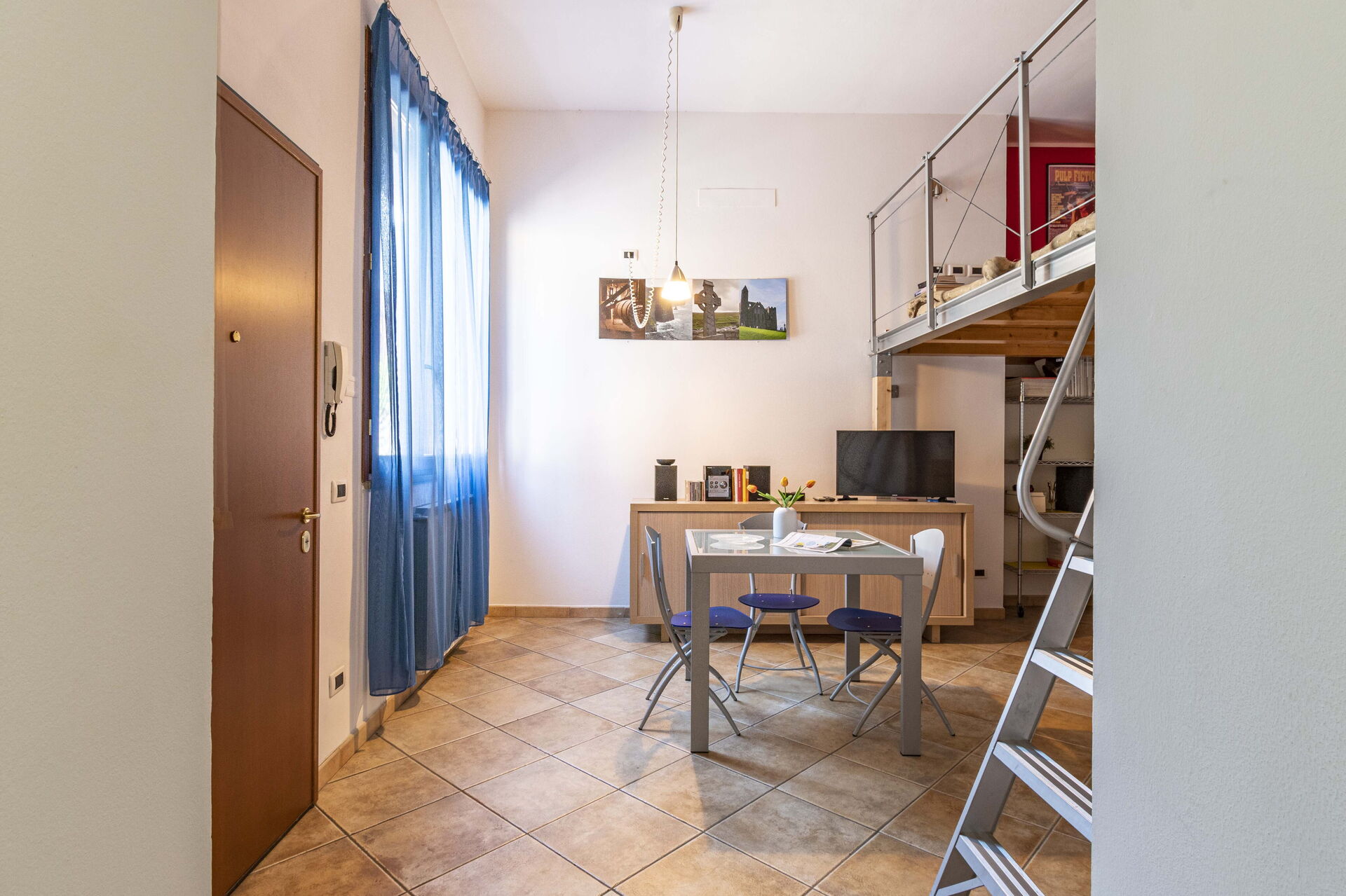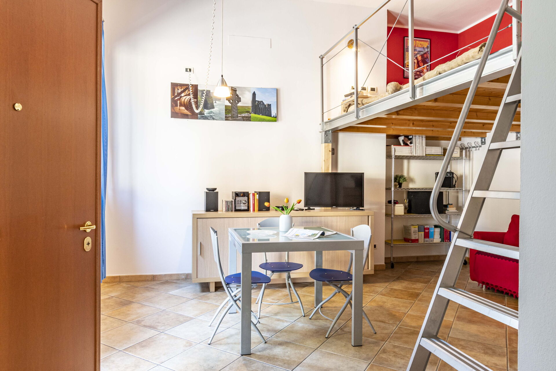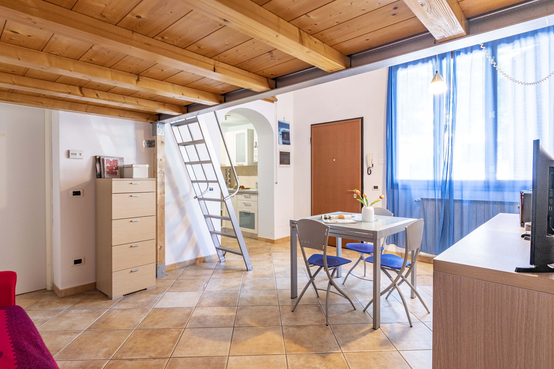 Kitchen + living room: well equipped kitchen, dining table, fridge, freezer, stove top, oven, toaster, italian coffee machine, sofa bed double, WIFI internet, satellite tv, loft.