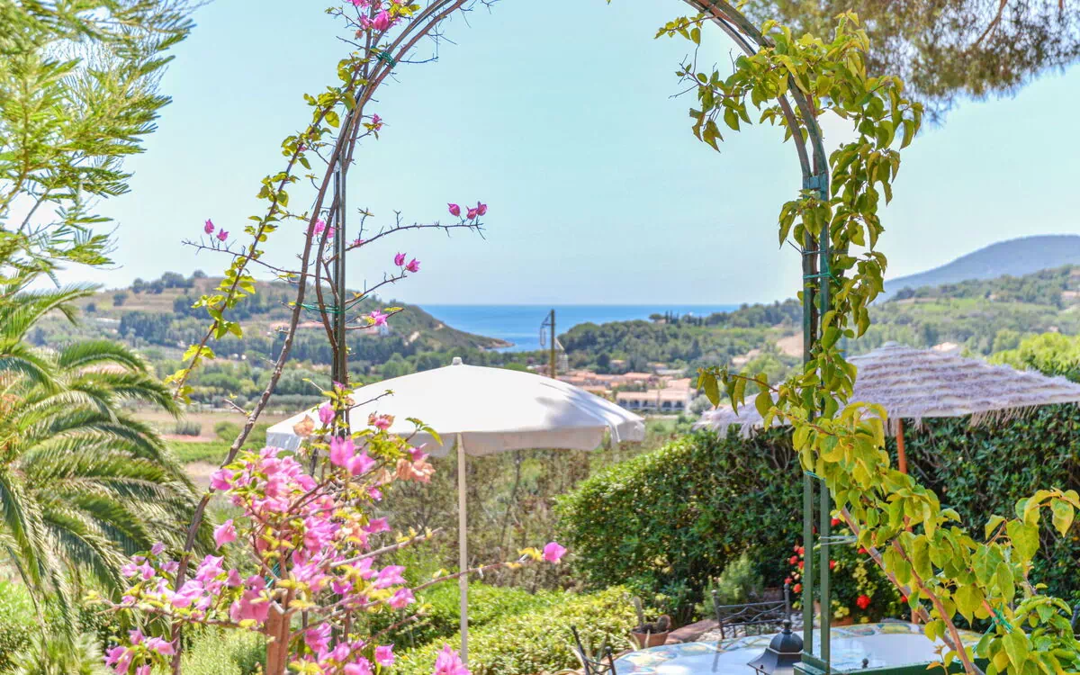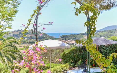 Located 1.7 km from the center of Porto Azzurro, the beautiful and comfortable villa "Tosca" offers a serene vacation rental experience in the Poraso district. This two-story villa is surrounded by trees and enjoys a quiet, sunny position atop a hill, just 1.6 km from the sea and the beach. It boasts a large, beautiful terraced garden (fenced), providing ample outdoor space for relaxation and recreation. With parking available for two cars at the property and motor access via an unmade road (500 m), you can conveniently explore the surrounding area.